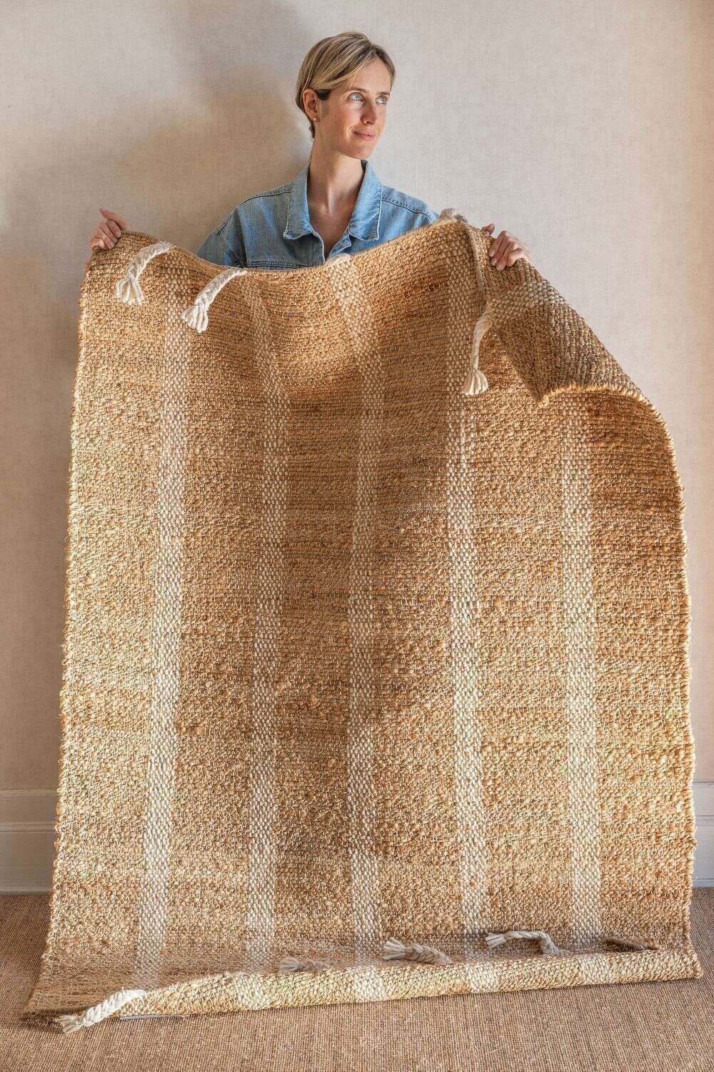 ALFOMBRA RAYADA NATURAL - YUTE - 1.80 X 1.20 MTS