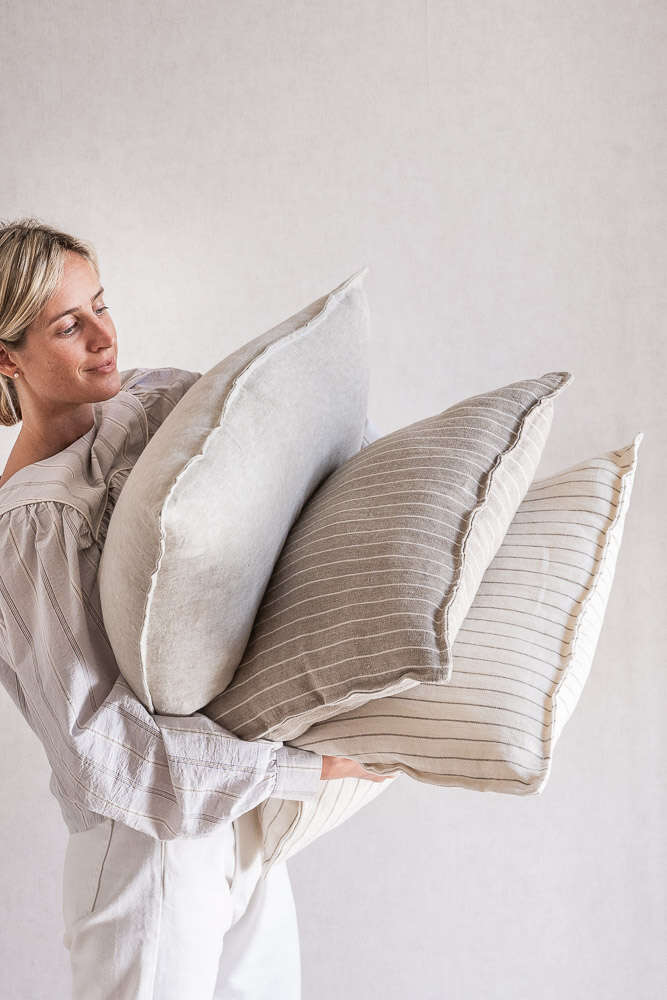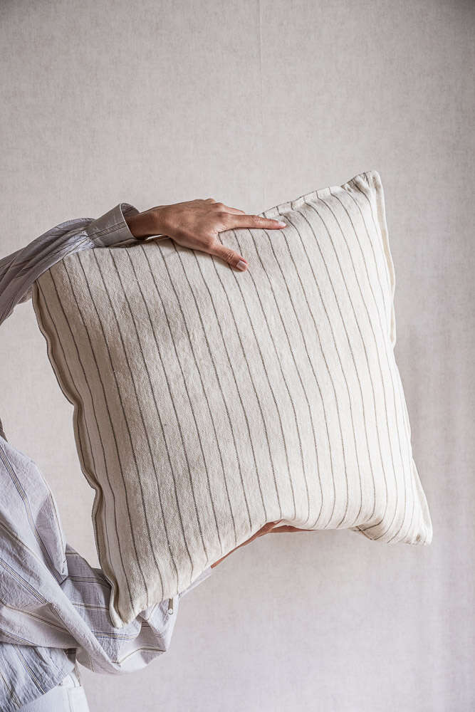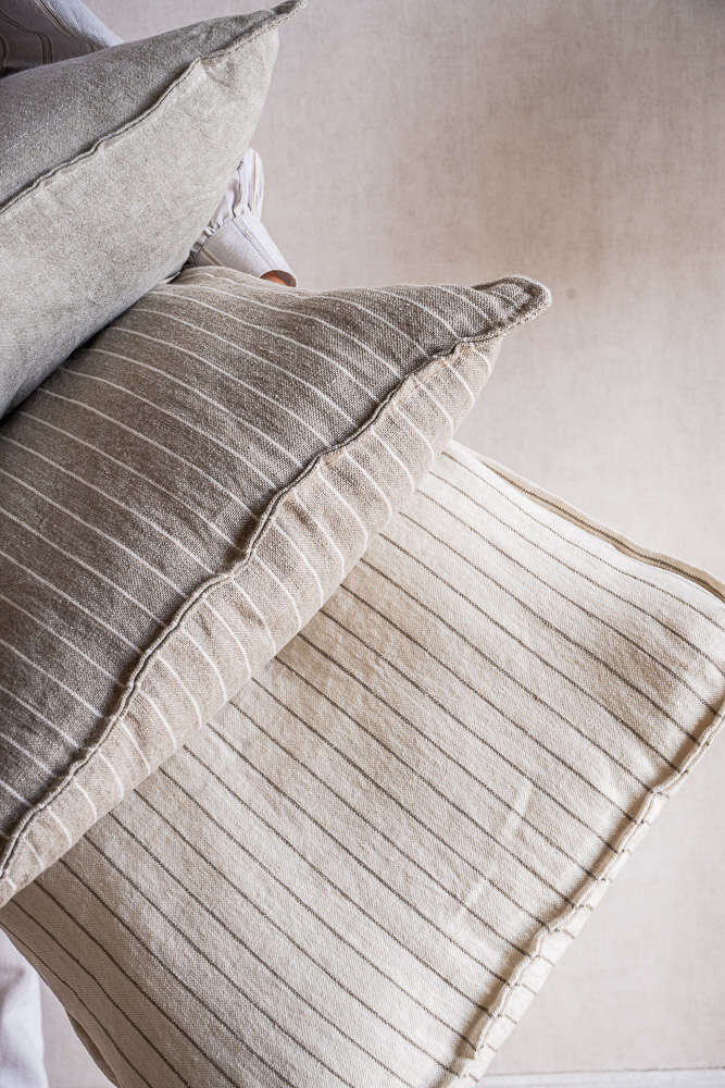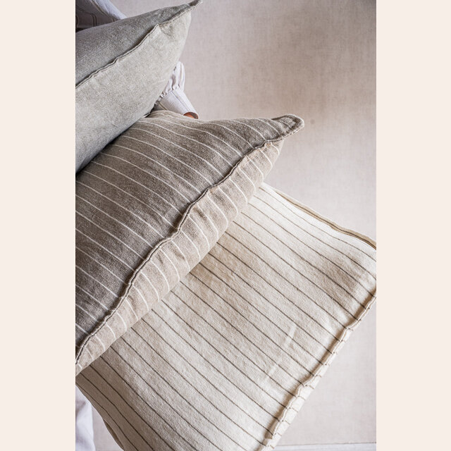 ALMOHADON LINO ALTO GRAMAJE RAYADO OFF WHITE - 55 X 55
