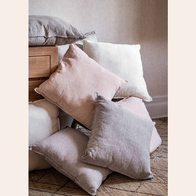 Colección de almohadones de 55 x 55 cms con funda 100% lino natural lavable en lavarropas.