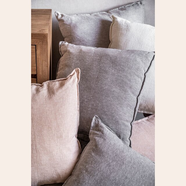 Colección de almohadones de 55 x 55 cms con funda 100% lino natural lavable en lavarropas.