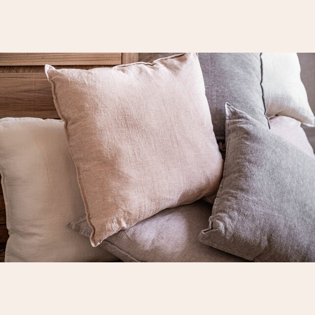 Colección de almohadones de 55 x 55 cms con funda 100% lino natural lavable en lavarropas.