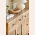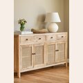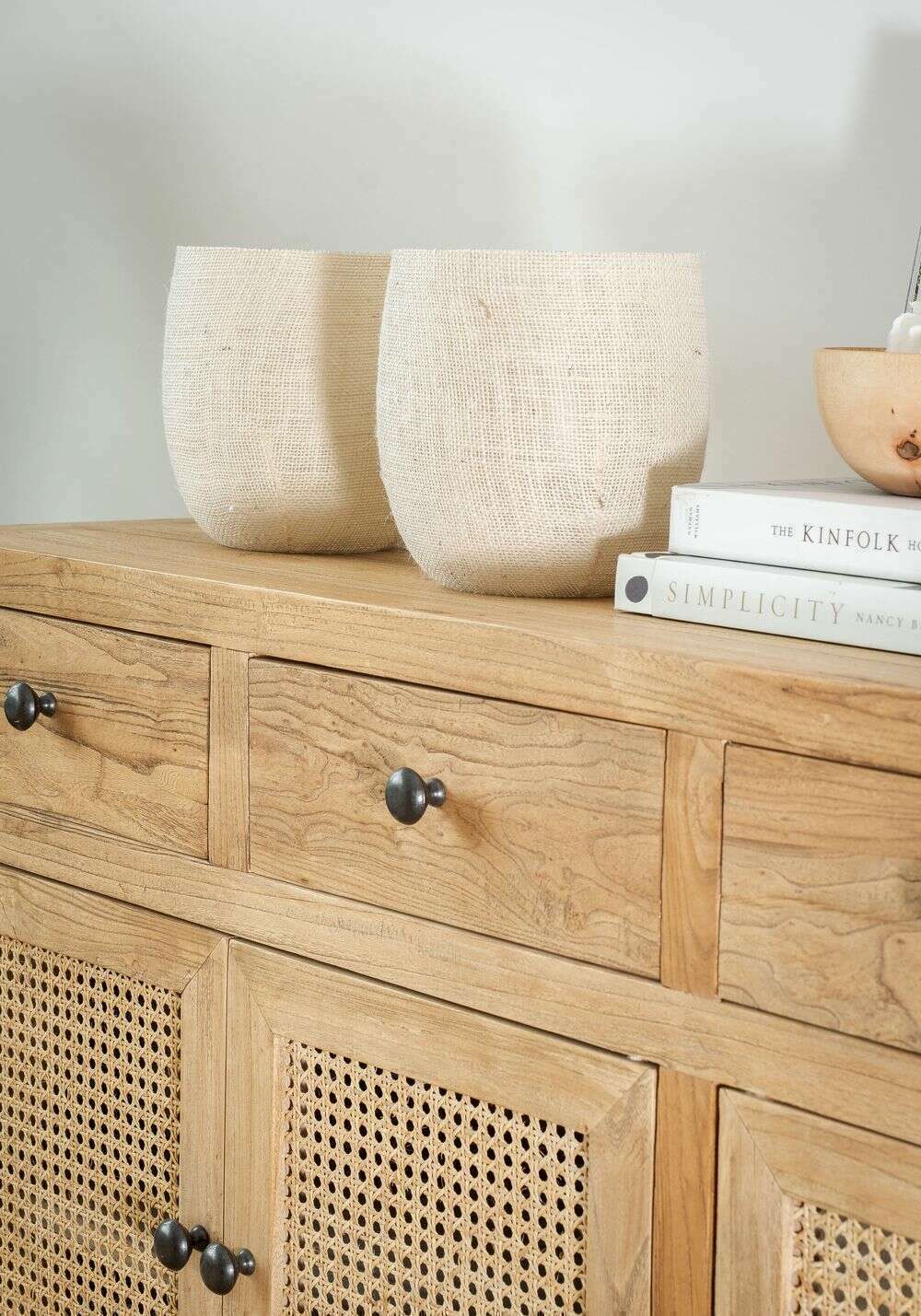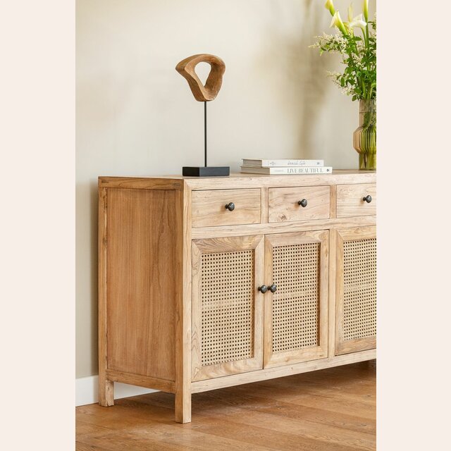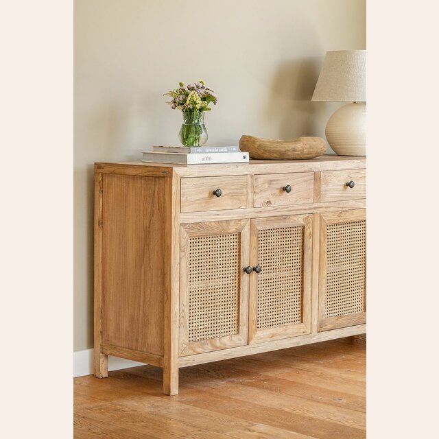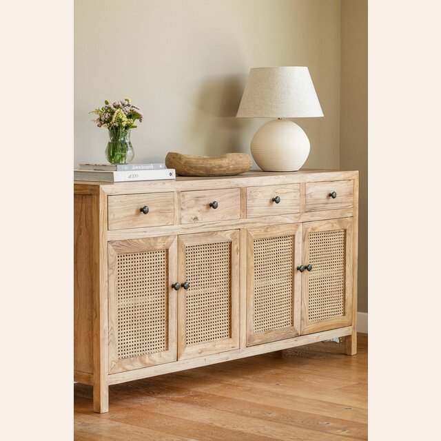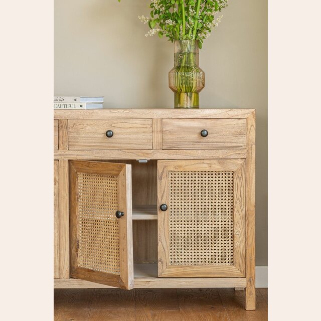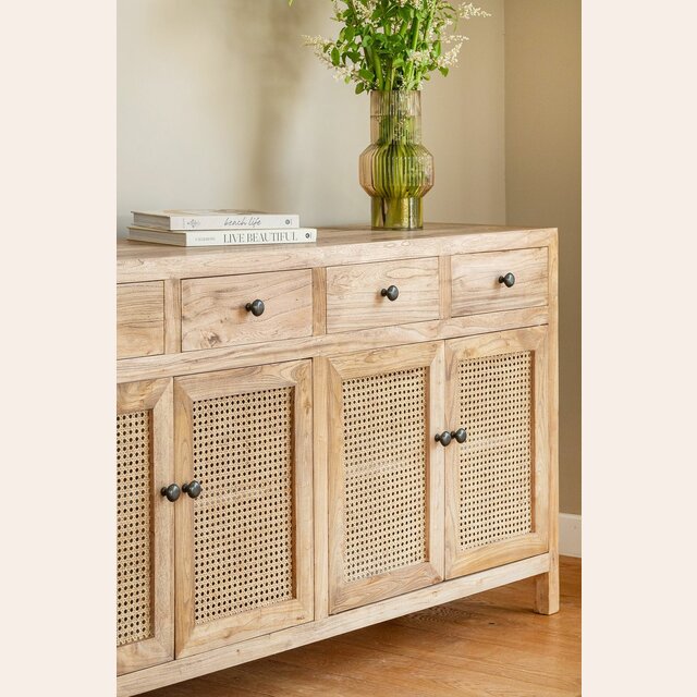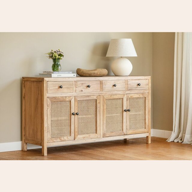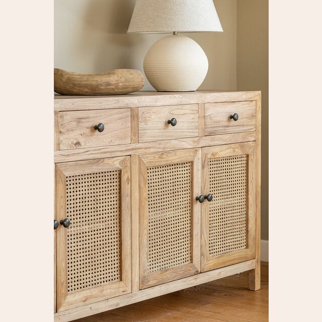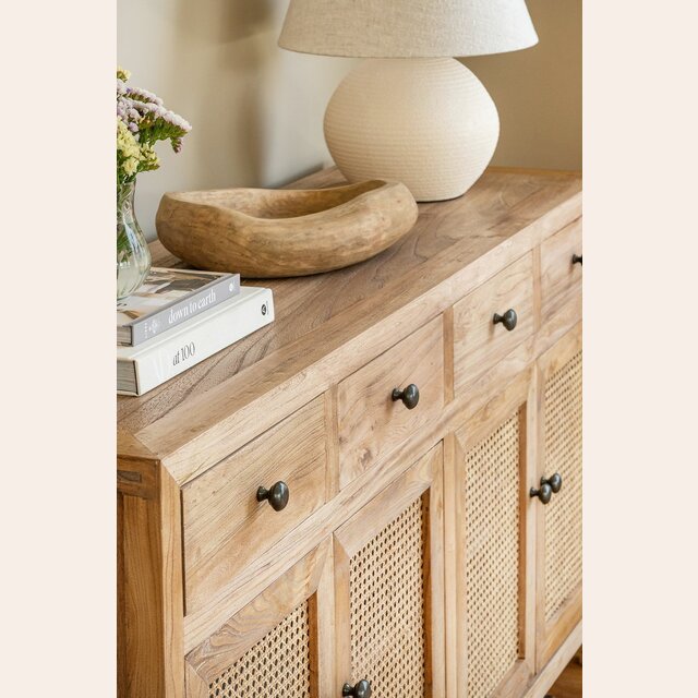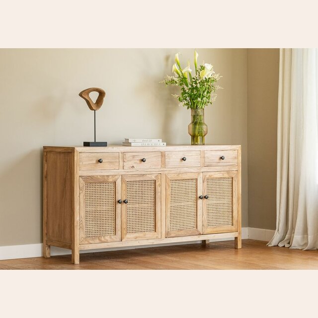 Gran aparador macizo con puertas de esterilla y 4 cajones. Amplio almacenamiento.