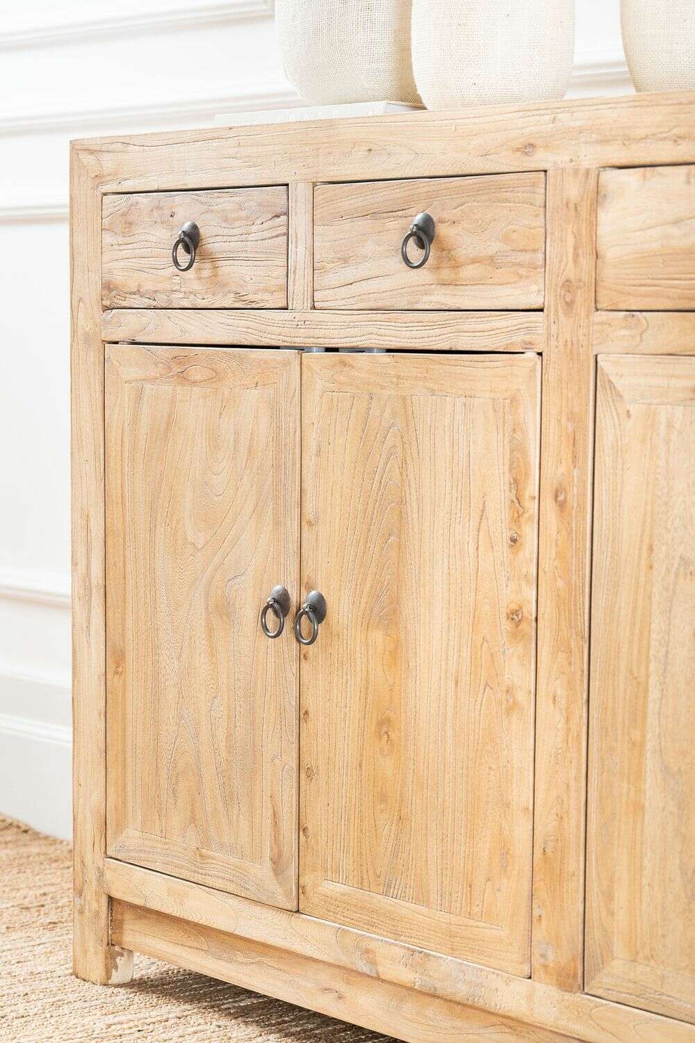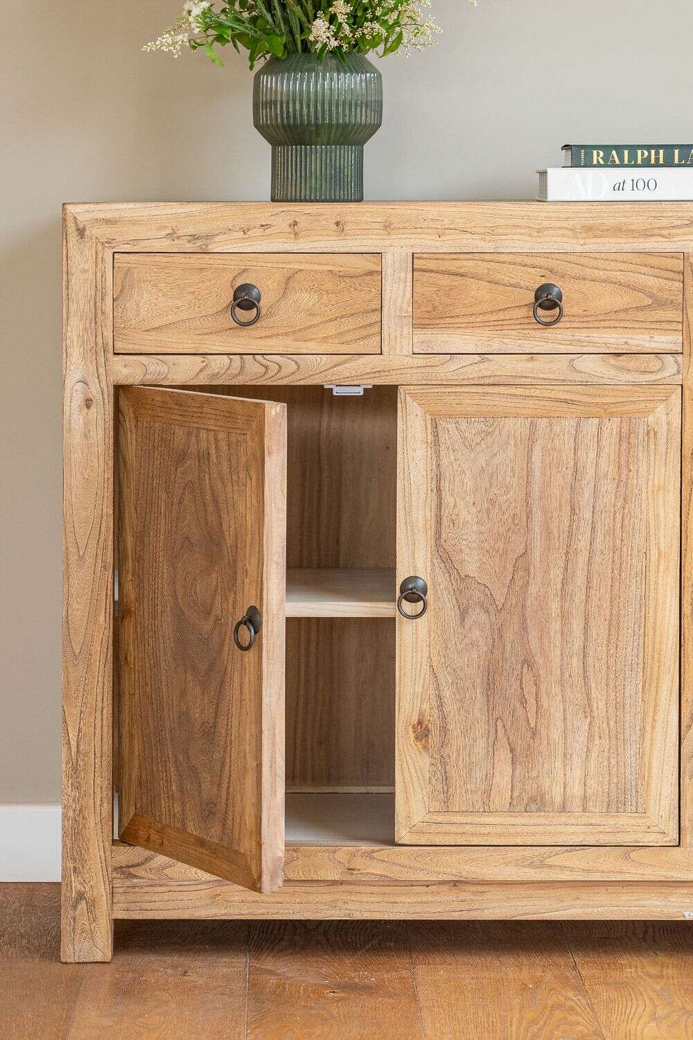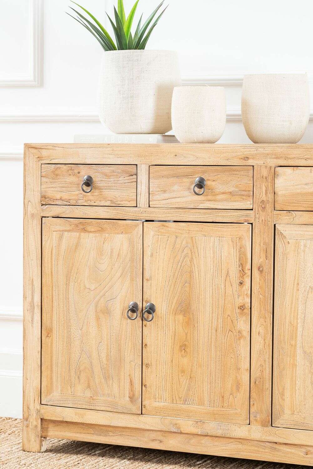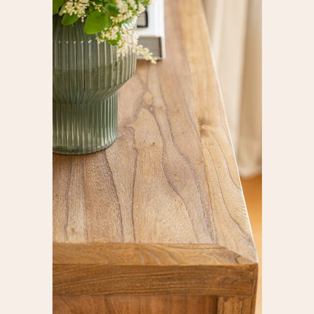 *La belleza de los muebles de olmo antiguo está en las imperfecciones. Fabricados en maderas de hasta 150 años de antigüedad, estos muebles guardan parte de su historia entre sus grietas e irregularidades únicas. Gracias a técnicas vanguardistas de oxigenación y reconstrucción, el olmo caracterizado por su solidez, fortaleza y resistencia, es rescatado para fabricar estos espectaculares muebles contemporáneos que celebran la belleza de las marcas del tiempo.