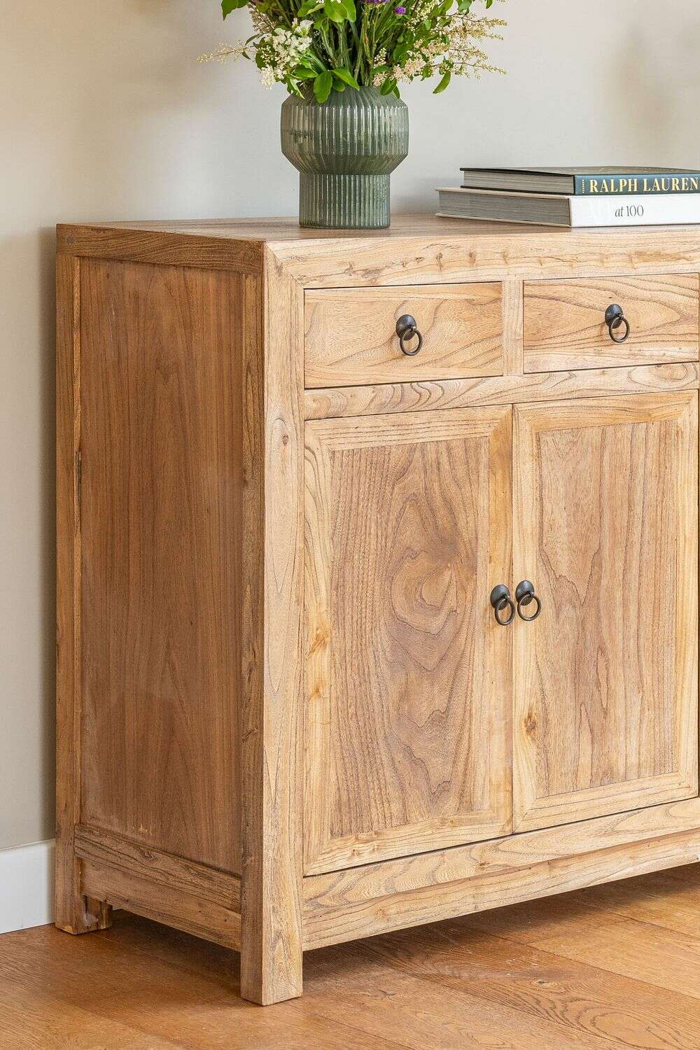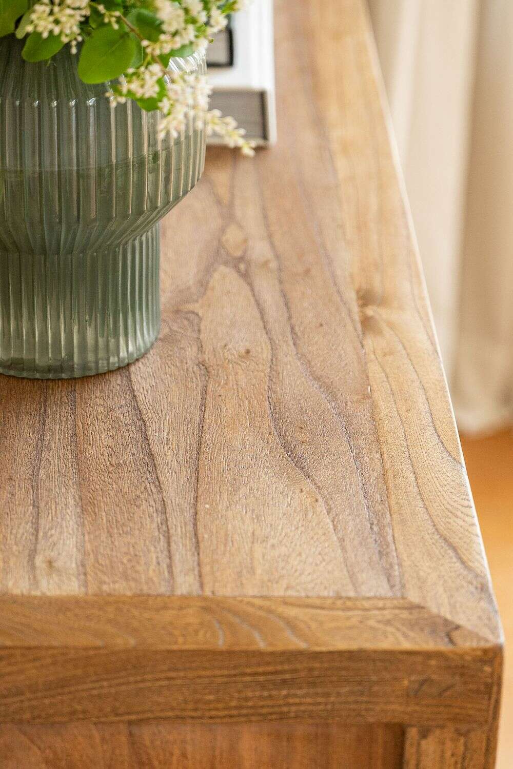 Integrable a mútiples estilos de decoración por su diseño sencillo y neutro, destacándose la espectacular veta del olmo antiguo recuperado, macizo.