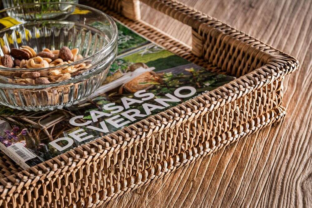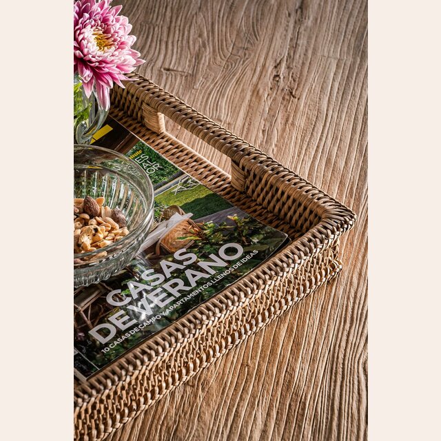 BANDEJA DE RATTAN NUDE - 52 X 32 CMS