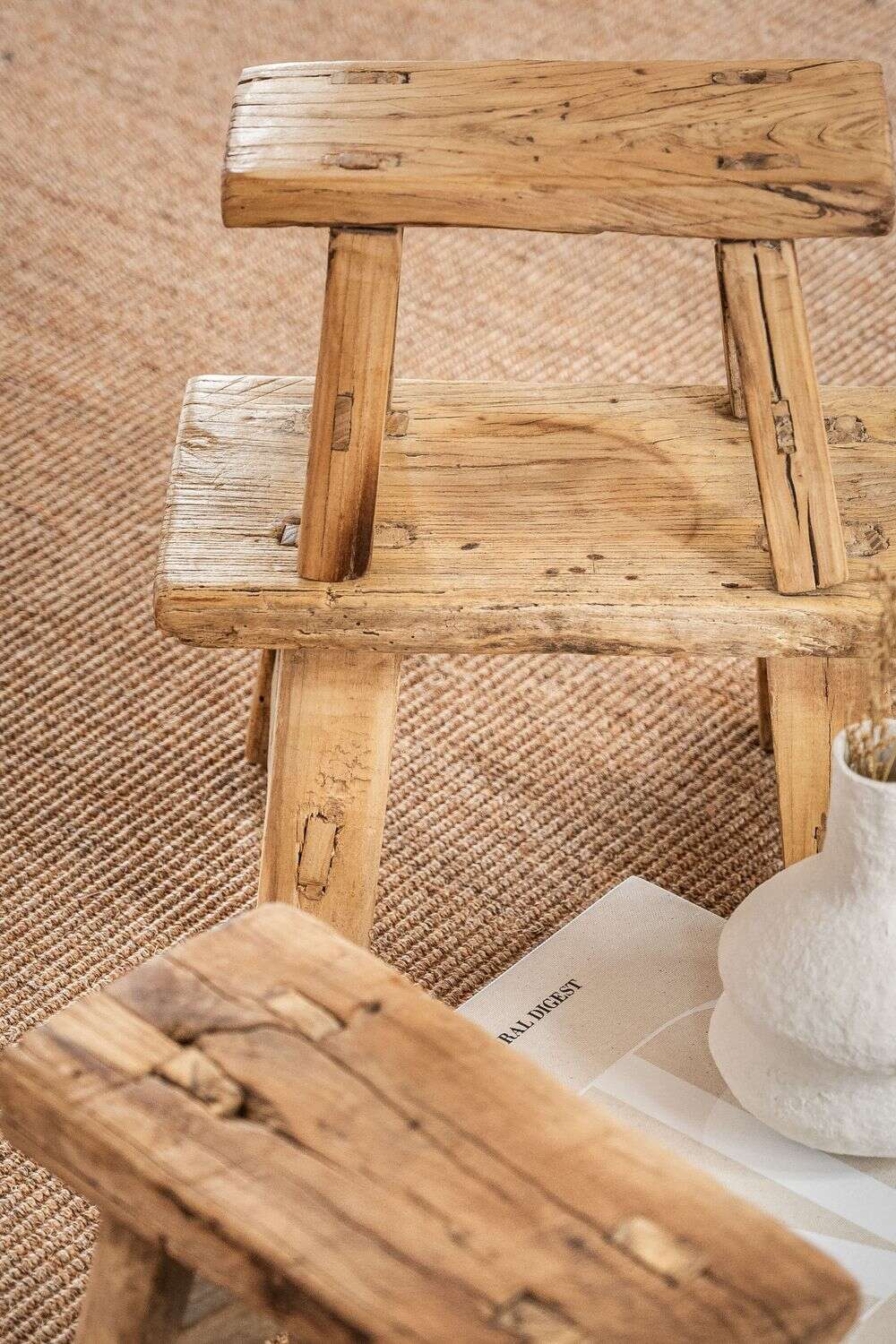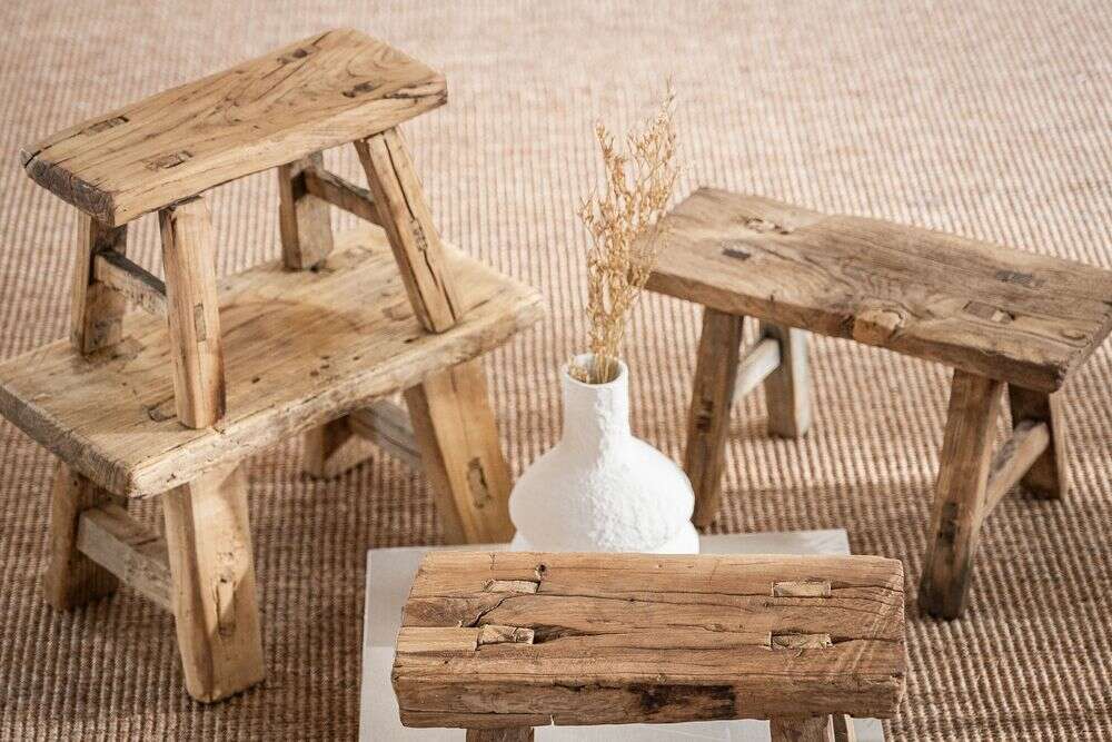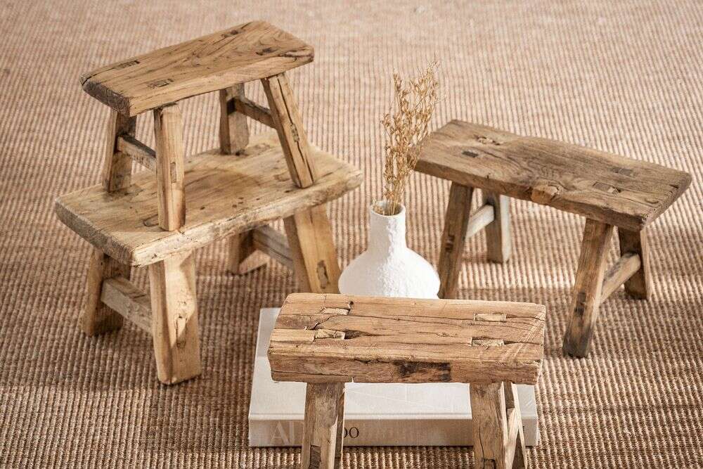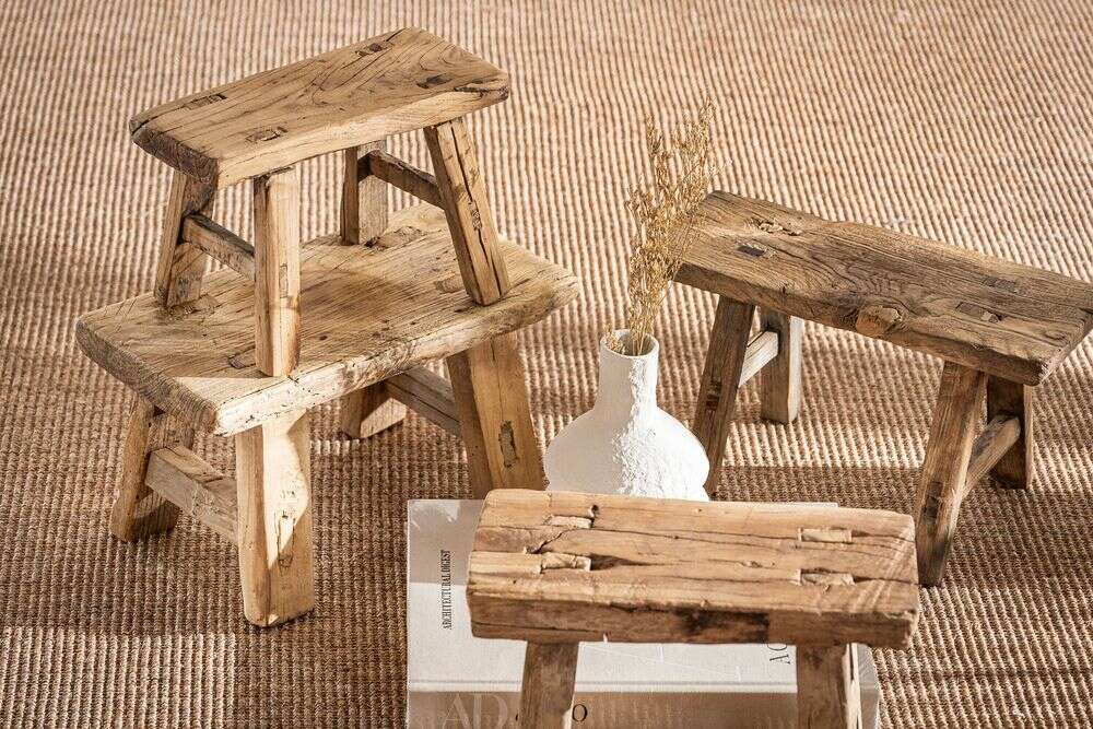 Banquito de maderas antiguas recuperadas - olmo.