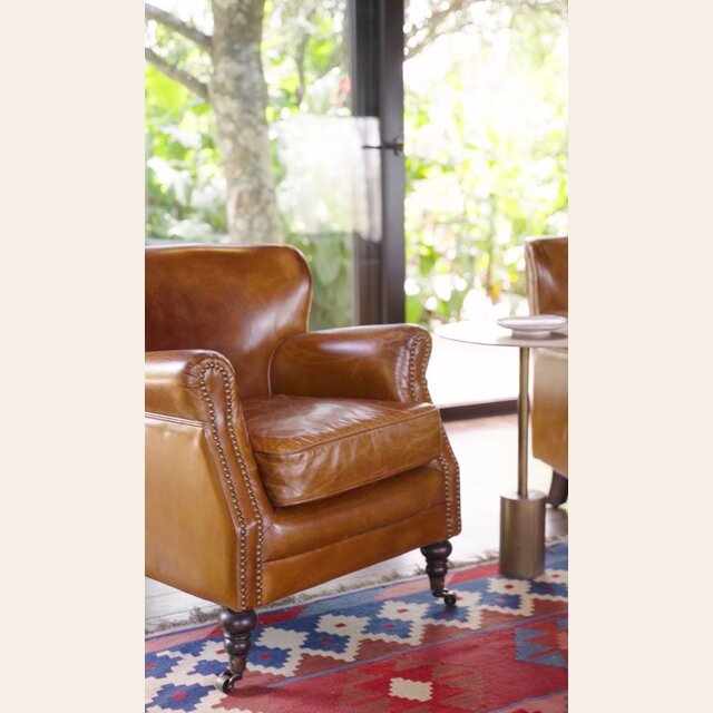 Bergère clásica de cuero italiano color habano con tratamiento para parecer envejecido.