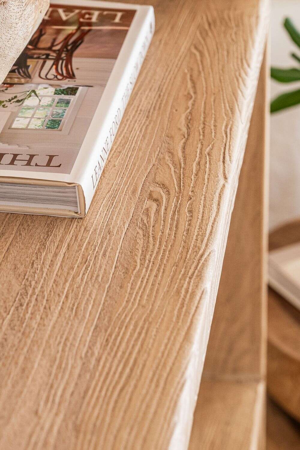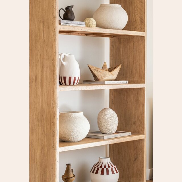 Gran biblioteca de olmo antiguo en lustre natural con suaves terminaciones curvas.