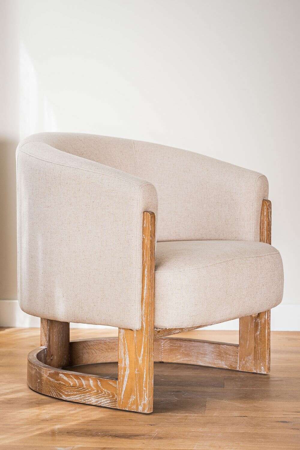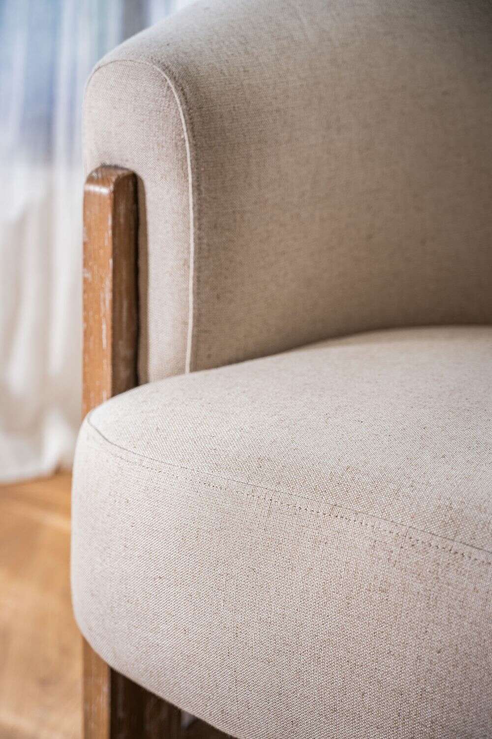 Estructura de fresno macizo curvo y tapizado crudo.