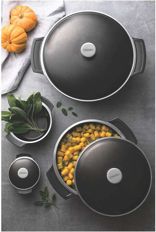 De diseño exclusivo, elegante y moderno, estas ollas se destacan no solo por su practicidad y durabilidad, sino porque también podés llevarlas directo a la mesa para servir. Son aptas para todo tipo de cocinas (gas, eléctrica, vitrocerámica e inducción) y también pueden ir al horno y al lavavajillas.