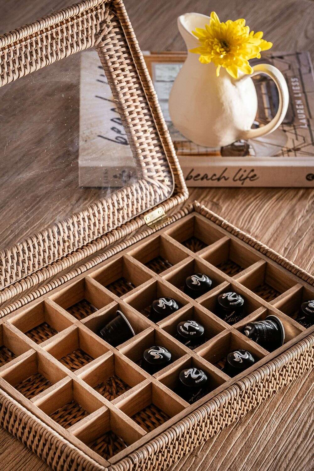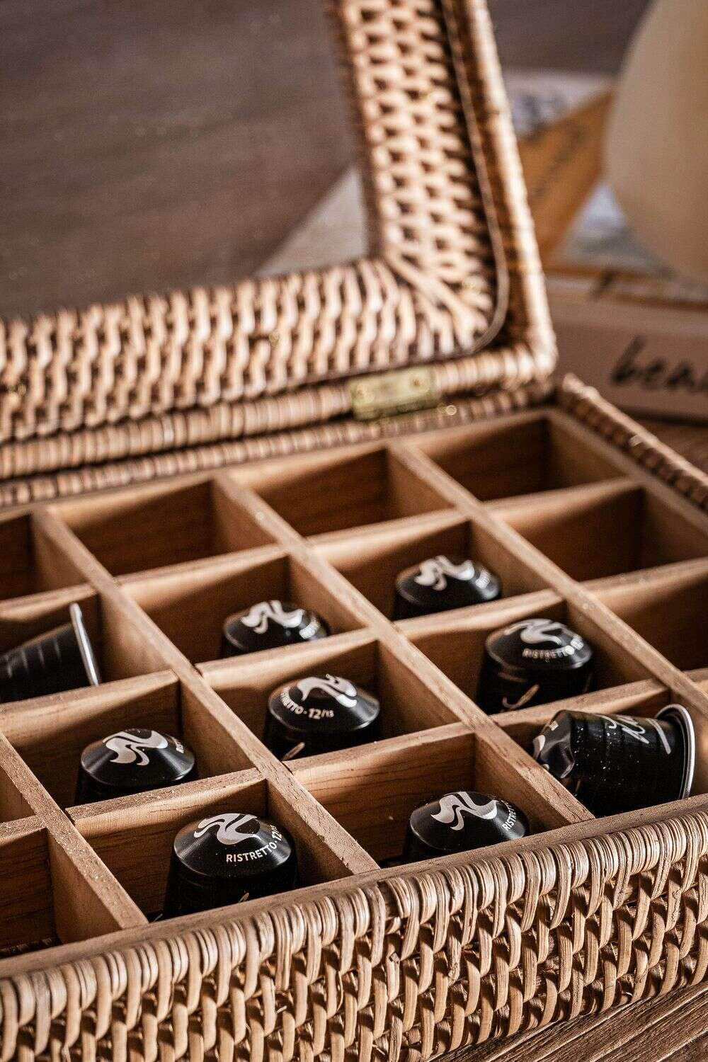 CAJA NESPRESSO RATTAN CON VISOR NUDE