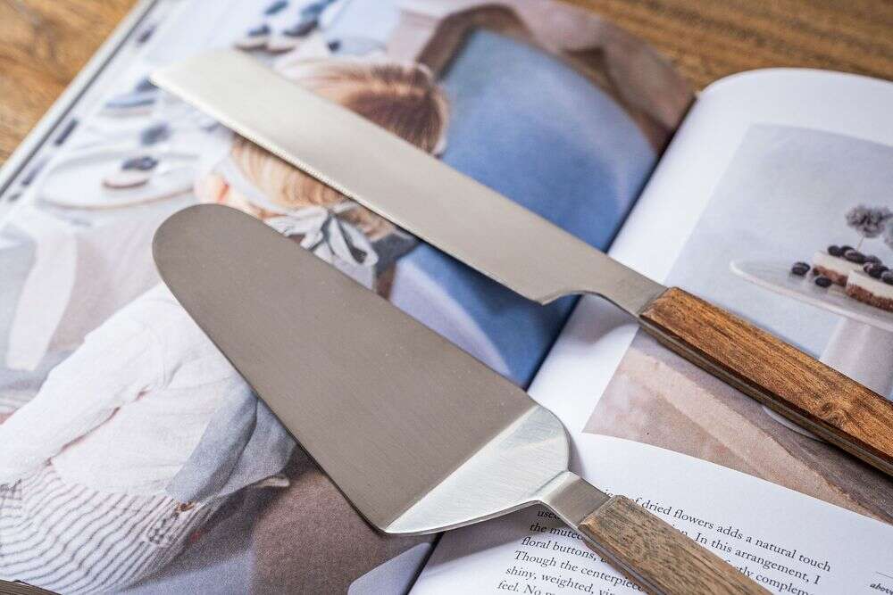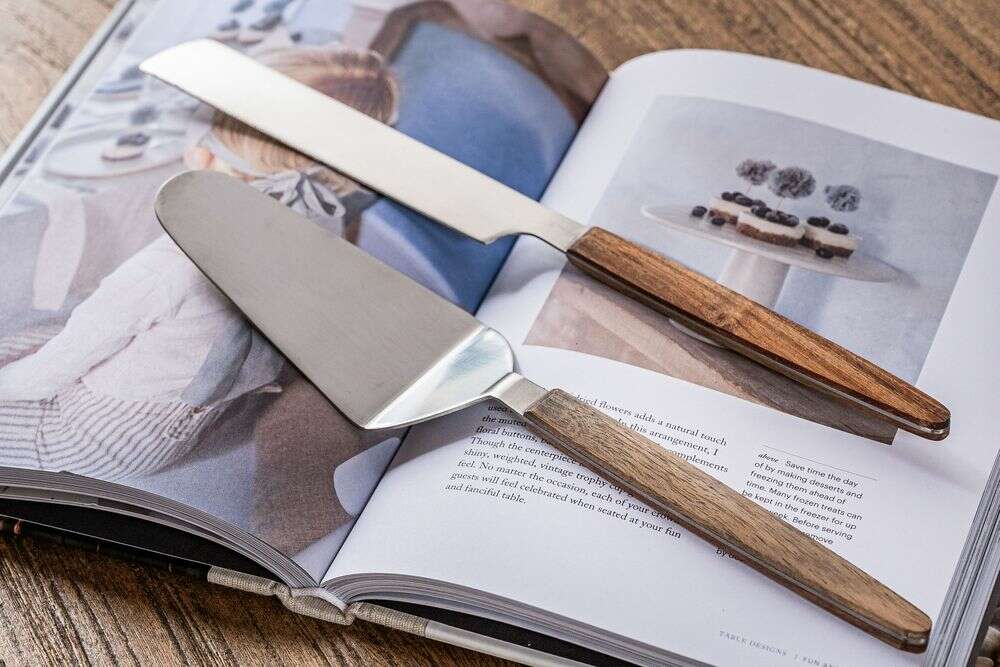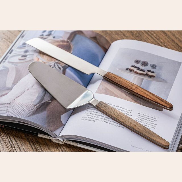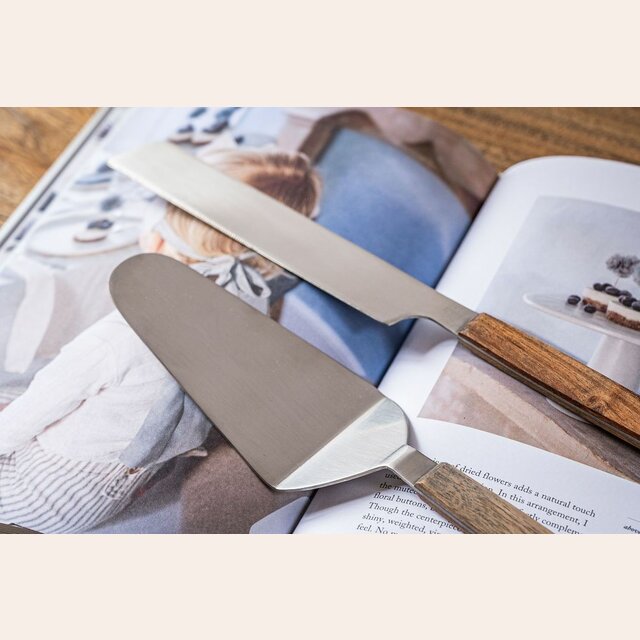 | Medidas: | Pala de torta: largo 29 cms - cuchillo de torta: 31 cms |
