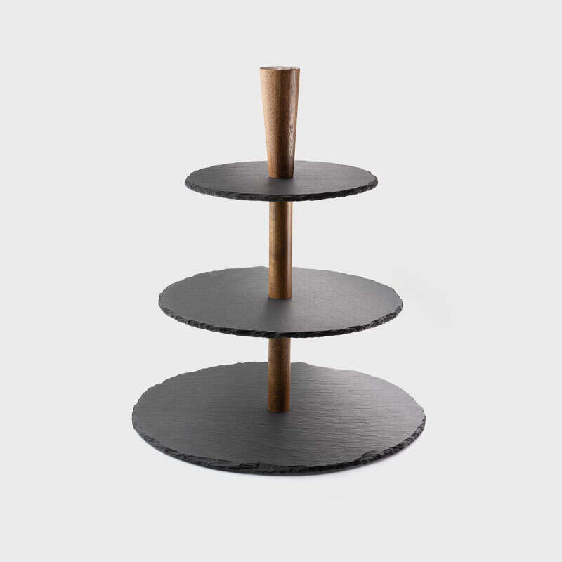 - 1 fuente de 3 pisos en pizarra natural y acacia.