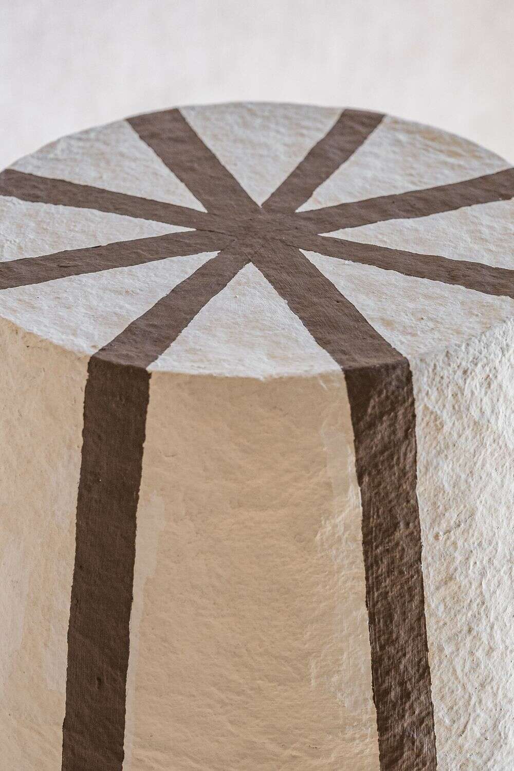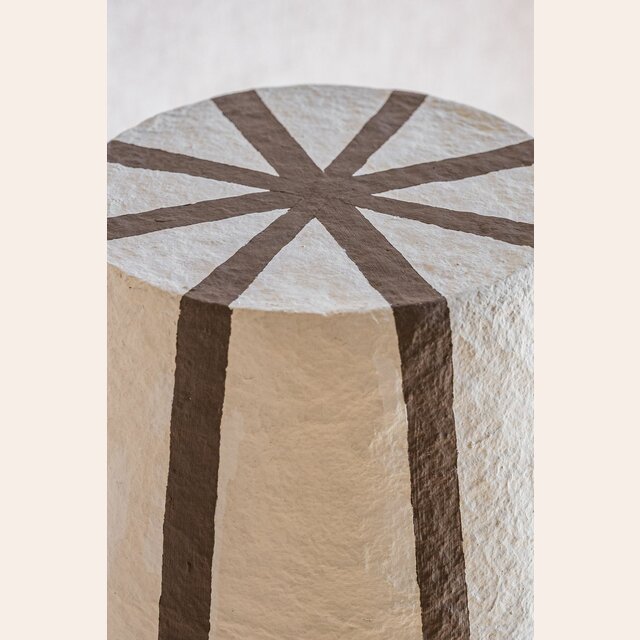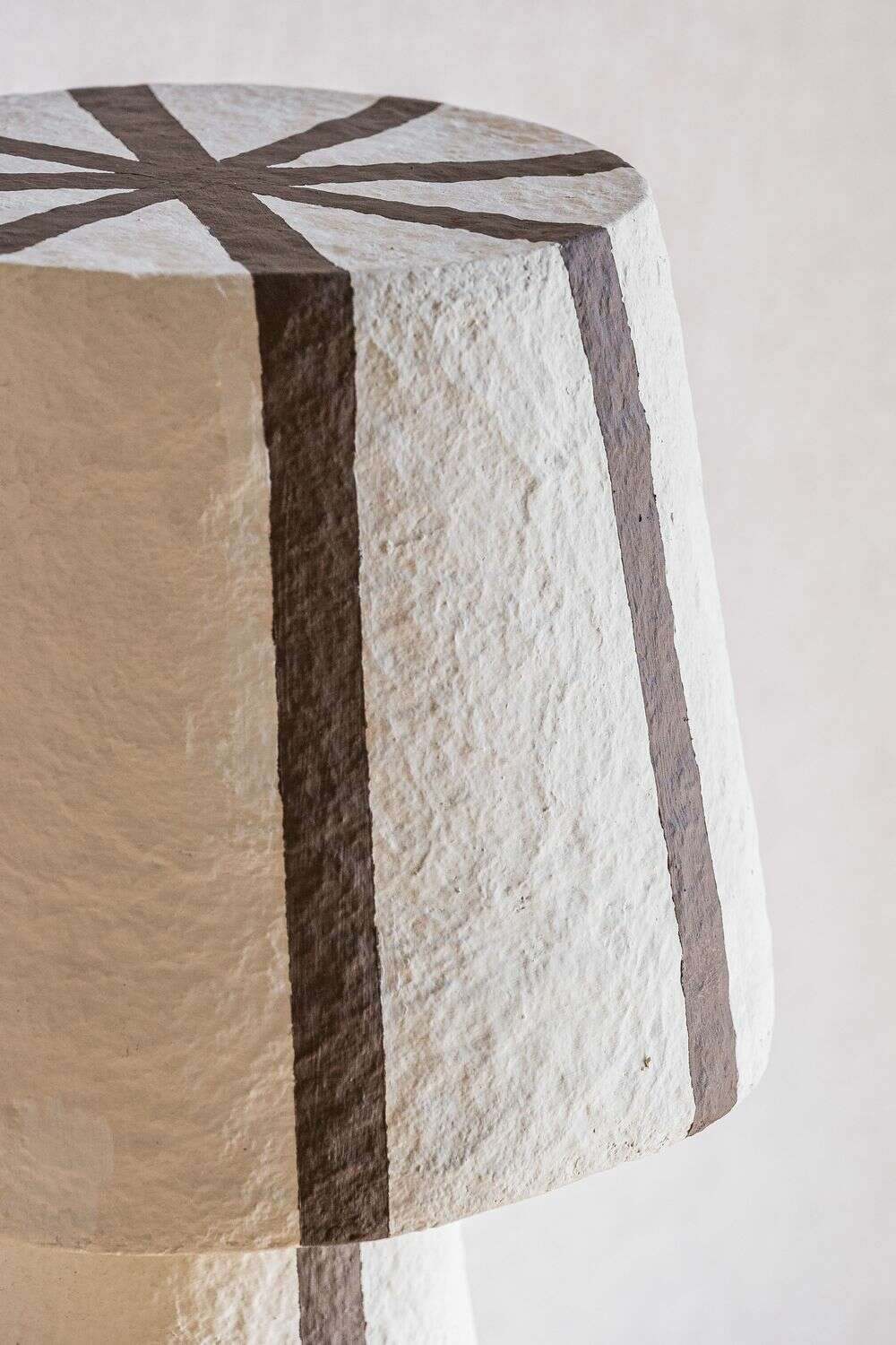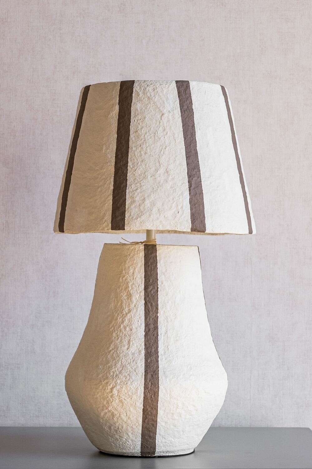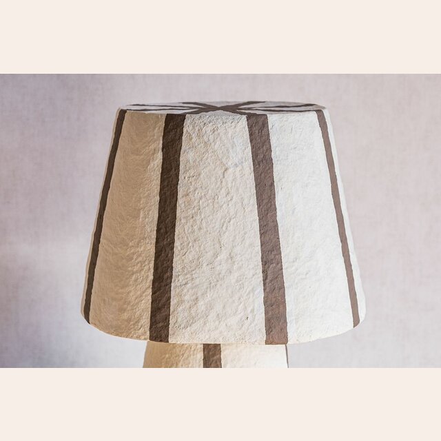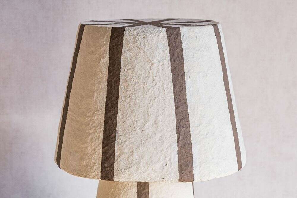 Un toque divertido de textura y estampa a rayas color chocolate en esta pieza de iluminación en papel maché.