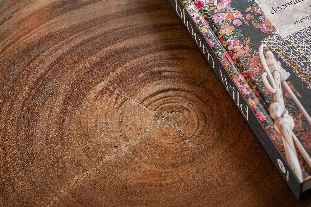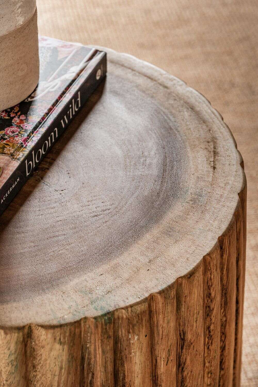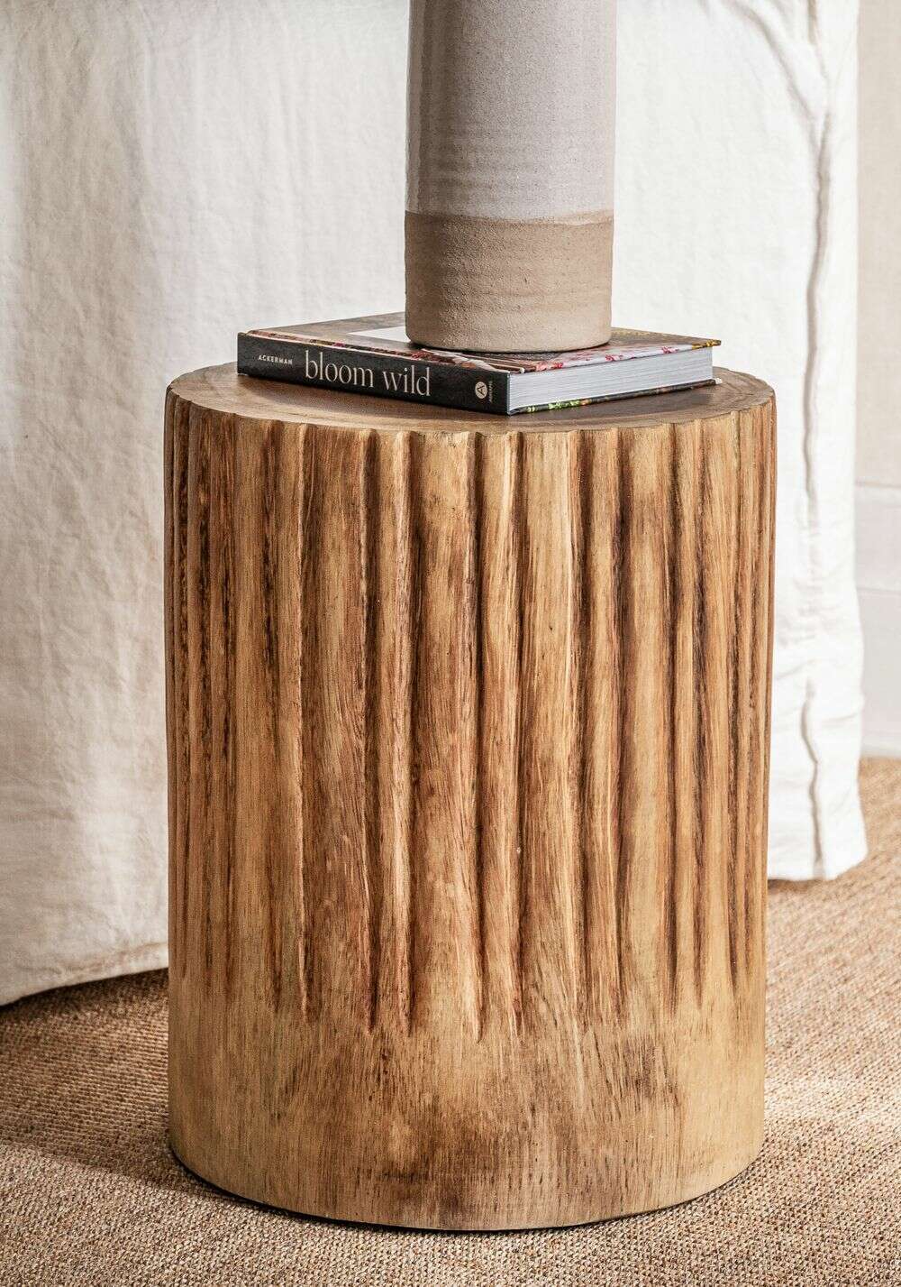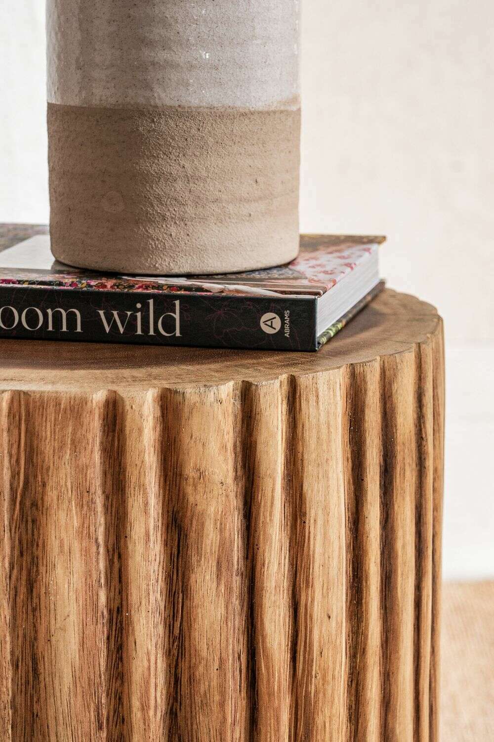 Mesa auxiliar de tronco macizo de árbol de suar.