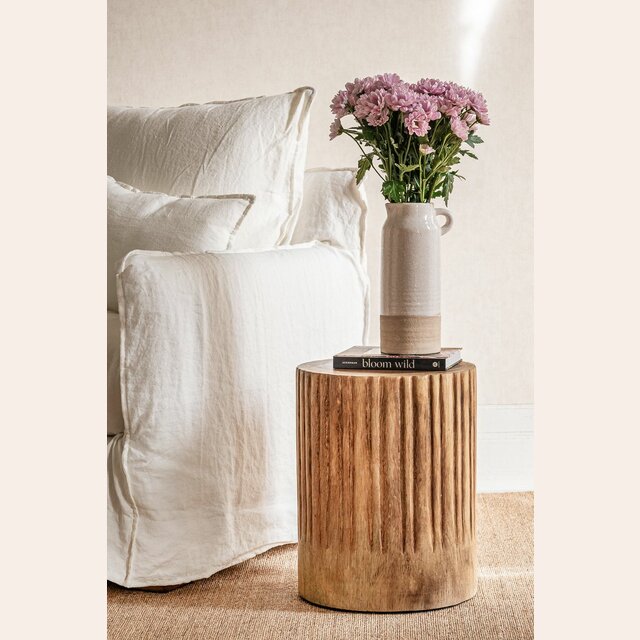 Práctica como mesita de apoyo al costado de un sillón o butaca, y como accesorio decorativo que aporta calidez y textura a tu ambiente.