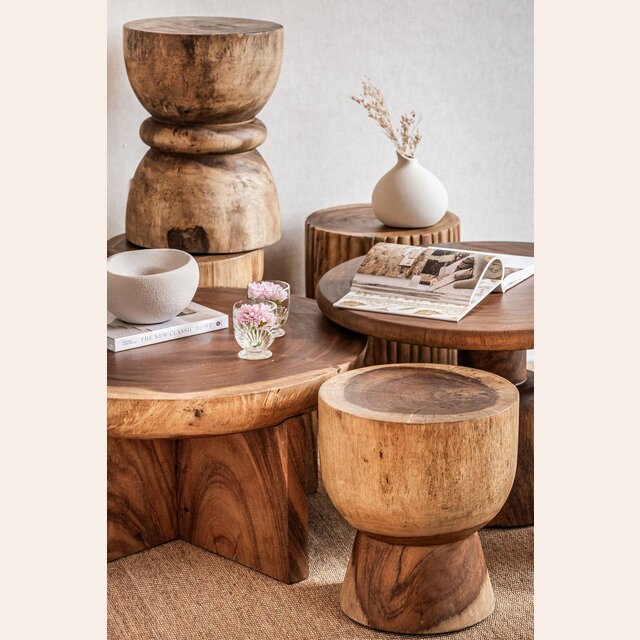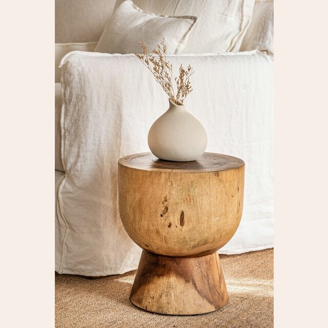 Práctica como mesita de apoyo al costado de un sillón o butaca, y como accesorio decorativo que aporta calidez y textura a tu ambiente.