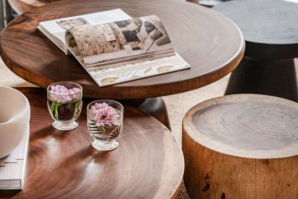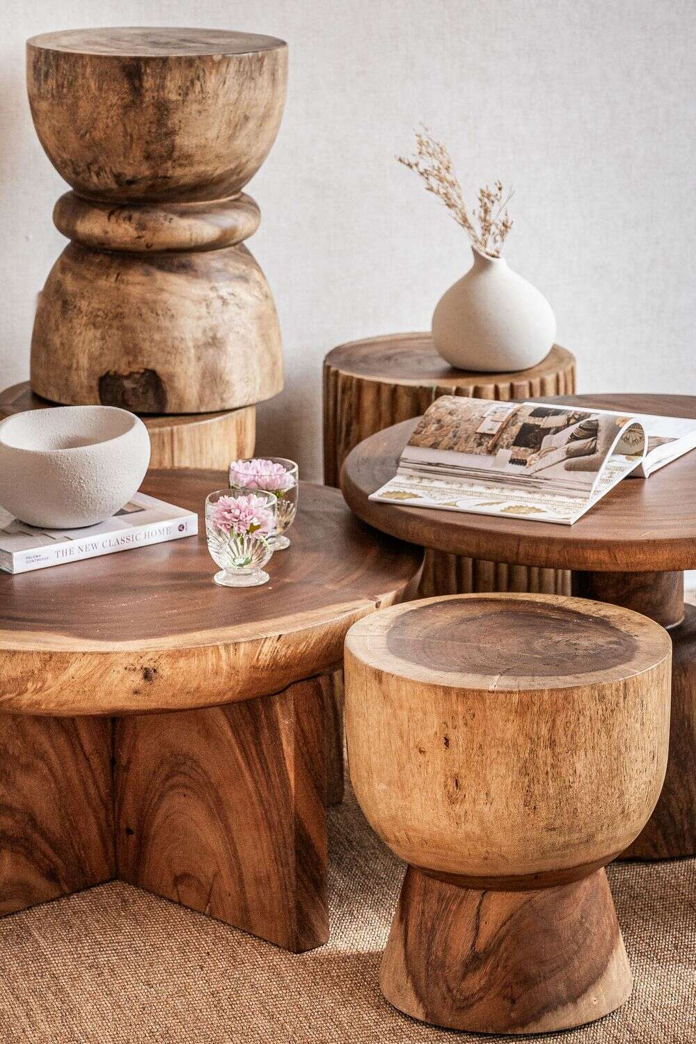 Mesa auxiliar de tronco macizo de árbol de suar.