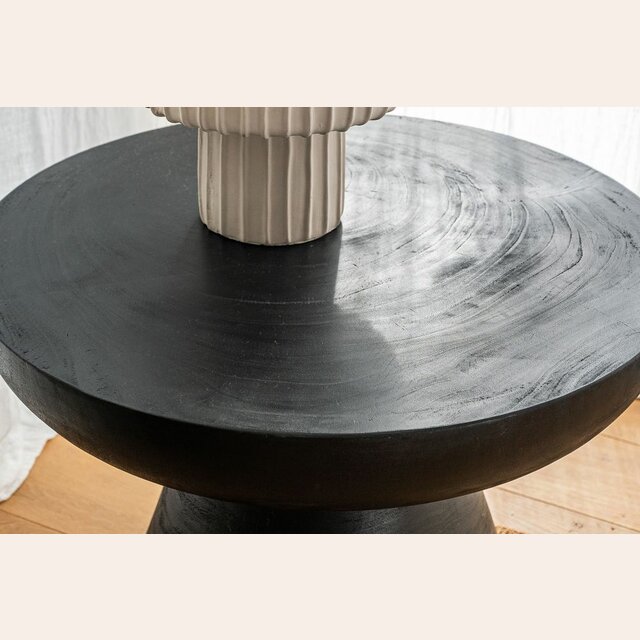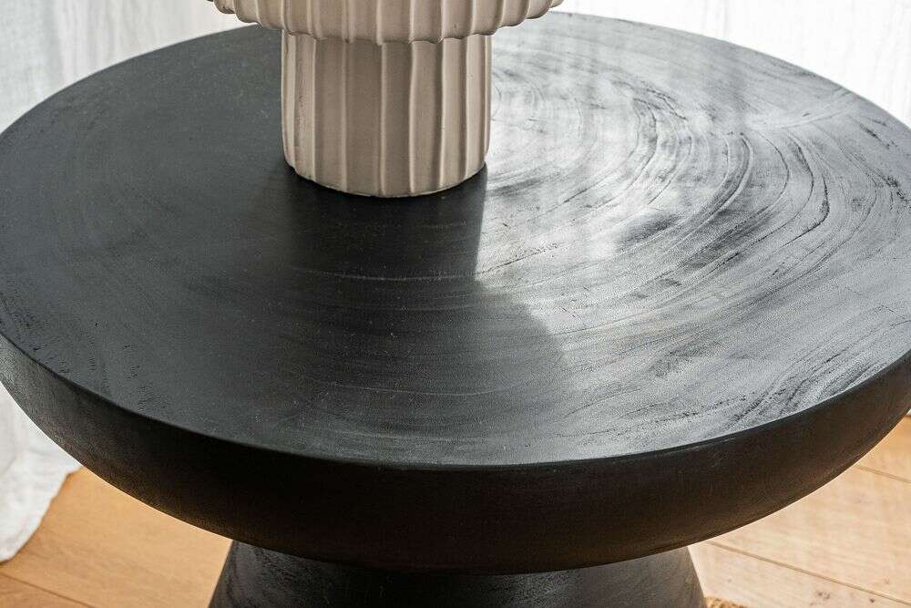 Mesa de centro o lateral en madera maciza de árbol de suar en lustre negro.