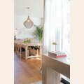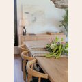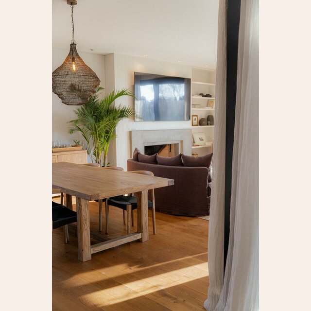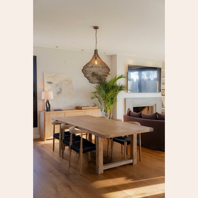 Gran mesa de comedor de olmo antiguo recupado en doble grosor, lustre natural. Una pieza sólida, fuerte y atemporal, que combina con múltiples estilos de sillas y decoraciones, para sentar 8 personas muy cómodamente.