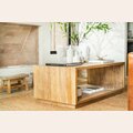Mesa cubo de olmo antiguo en lustre natural ideal para accesorizar el estante inferior con libros y adornos.