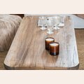 Mesa ratona de olmo antiguo recuperado con doble grosor de patas y tapas todo en terminaciones curvas y redondeadas.