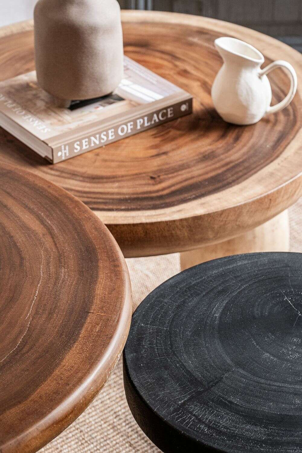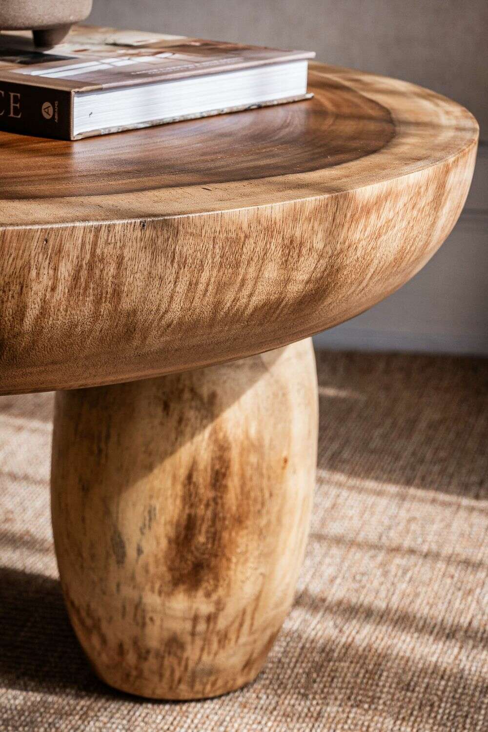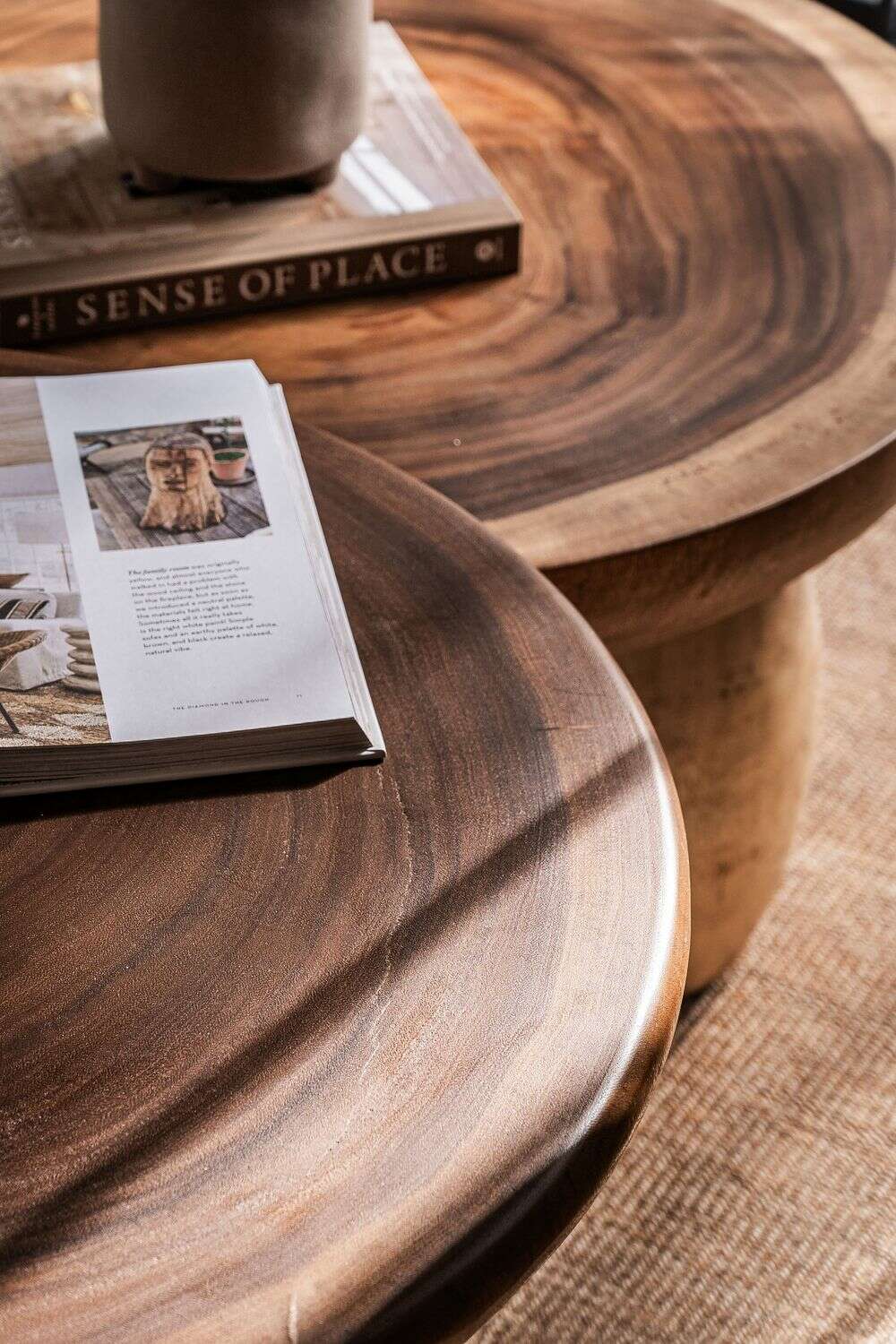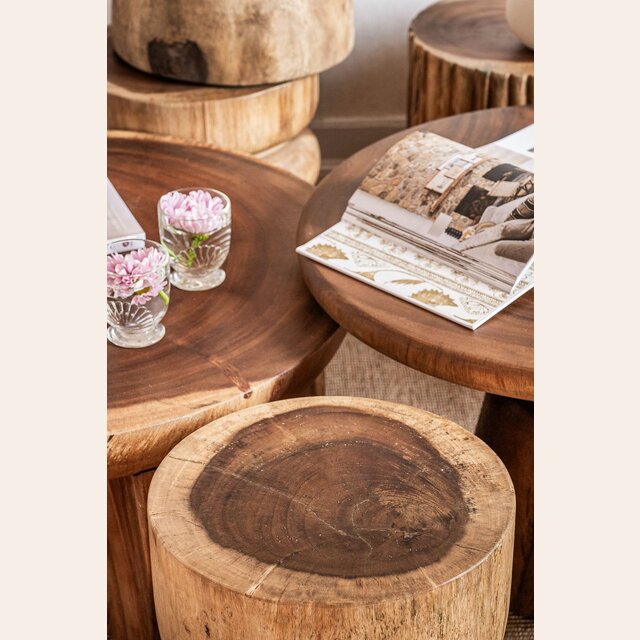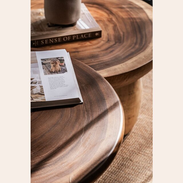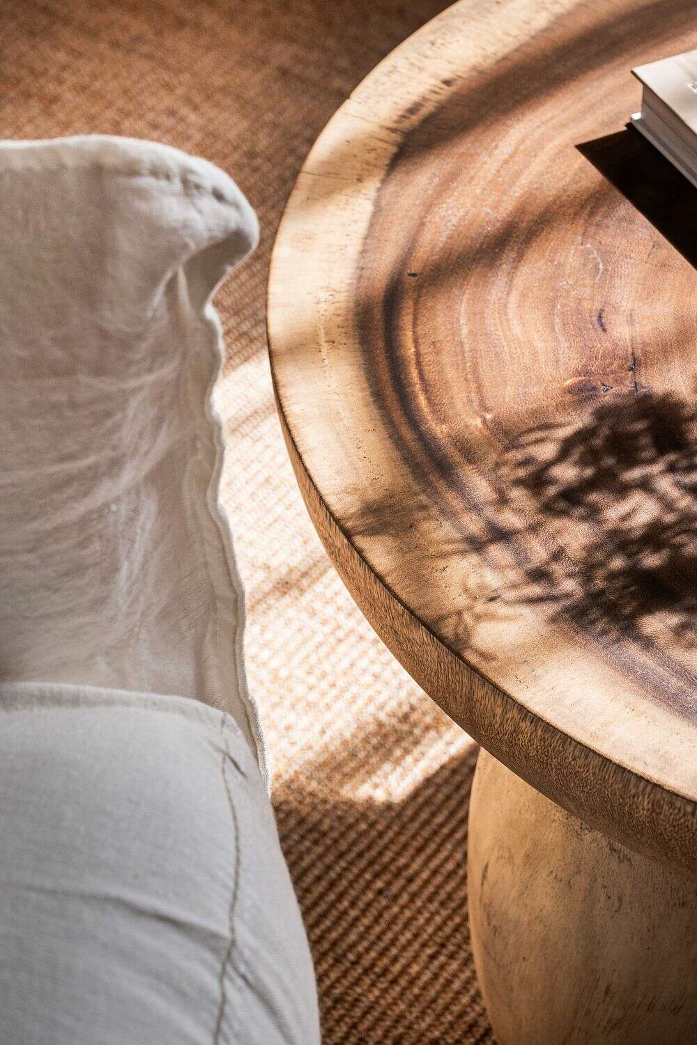 Mesa de centro en madera maciza de árbol de suar, lustre natural.