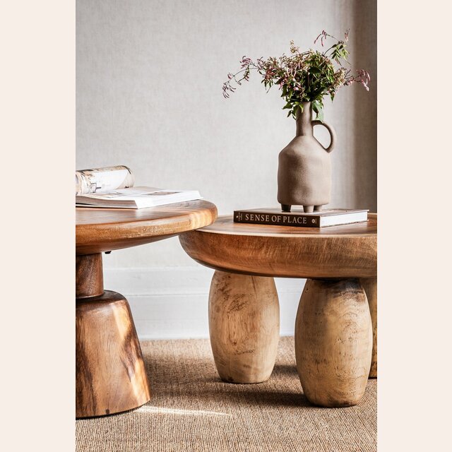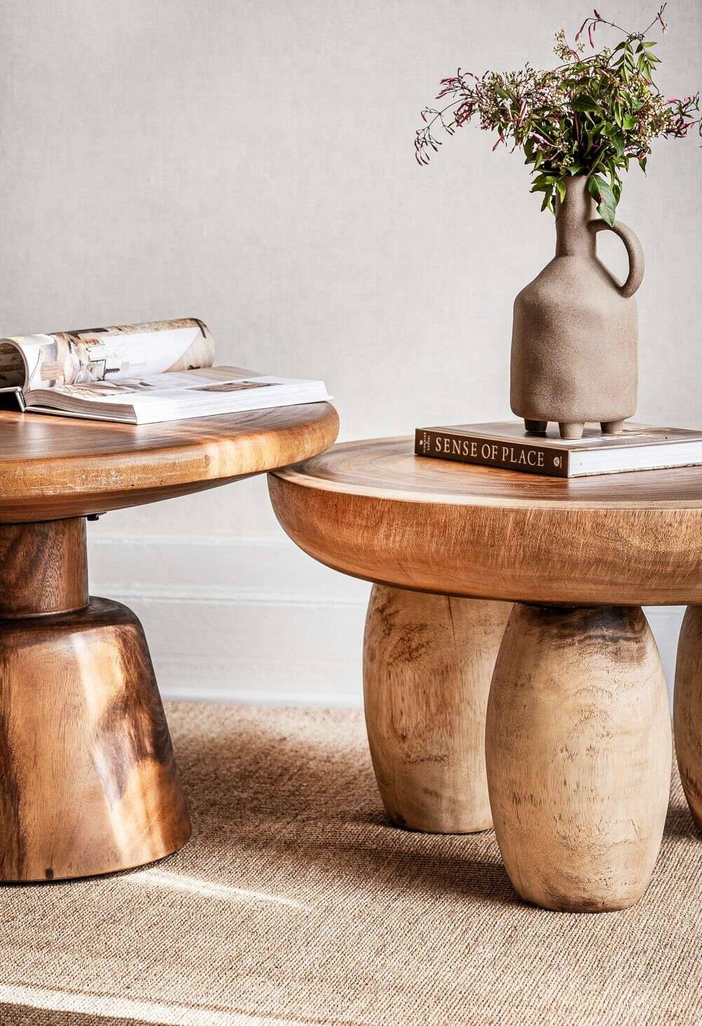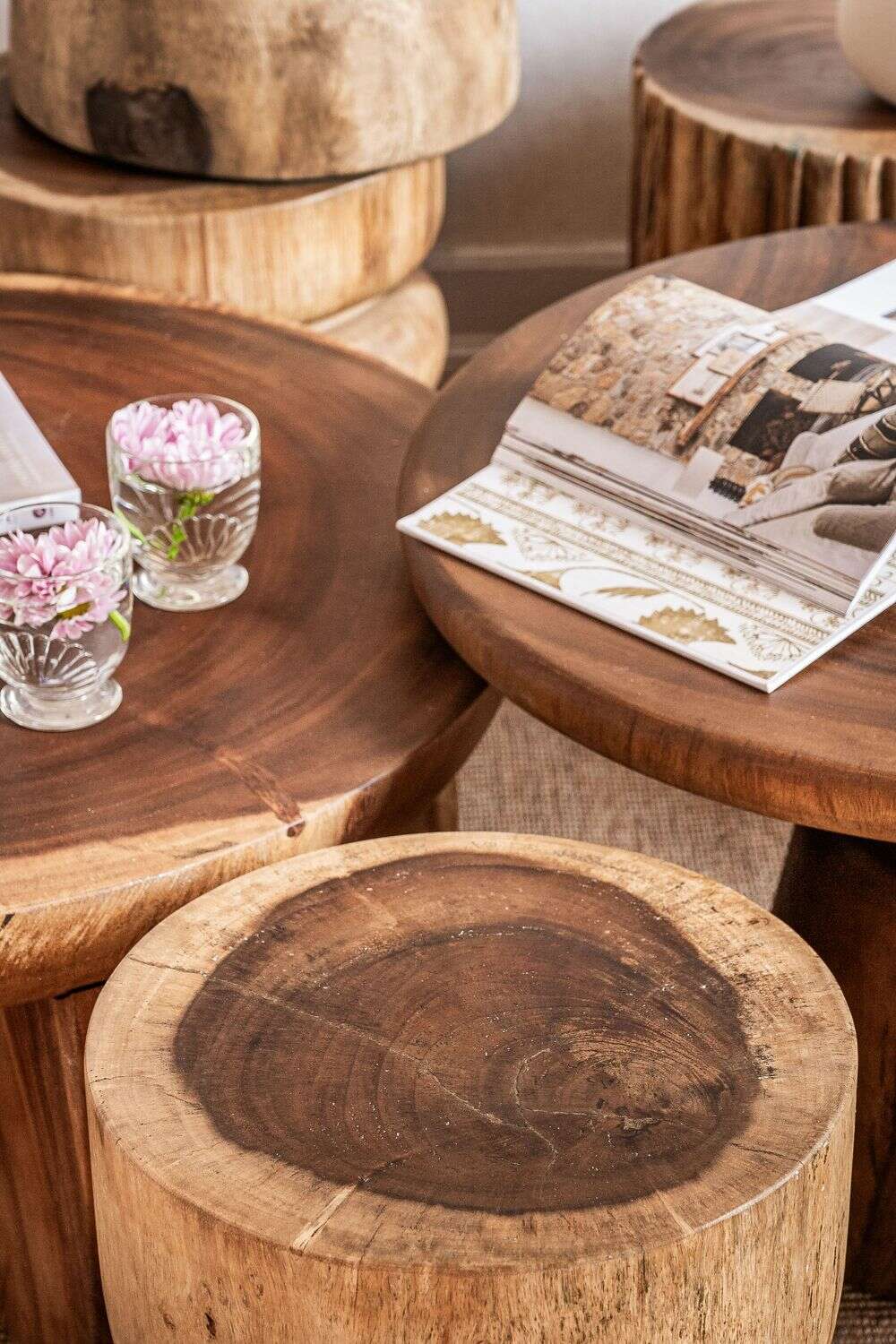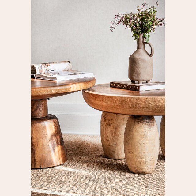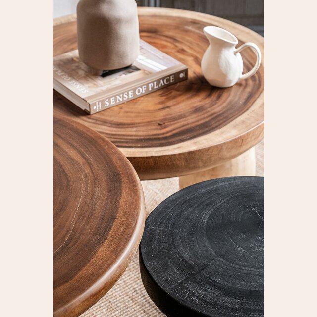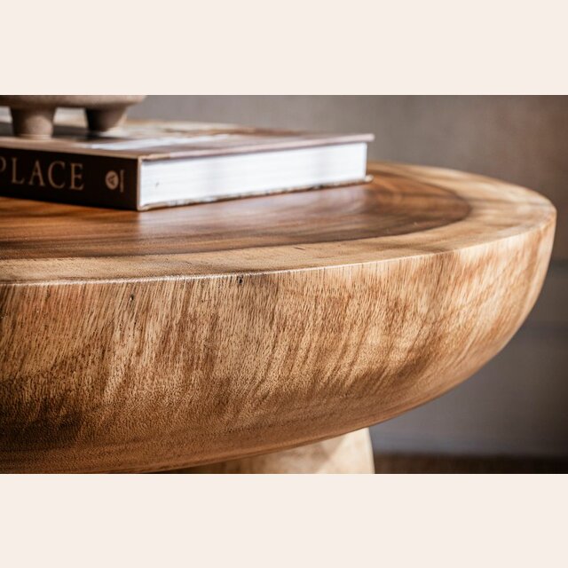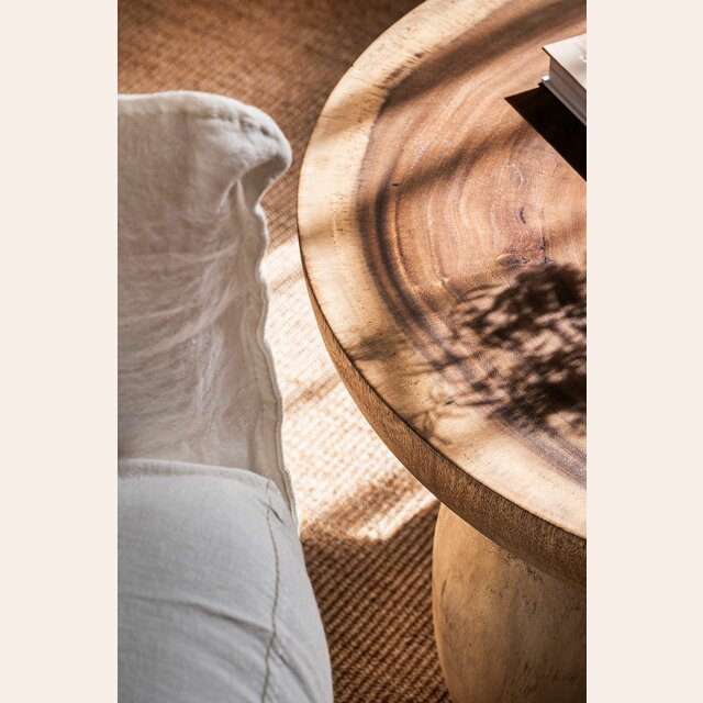 Mesa de centro en madera maciza de árbol de suar, lustre natural.