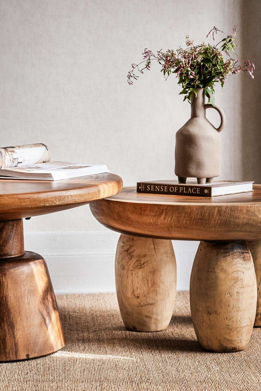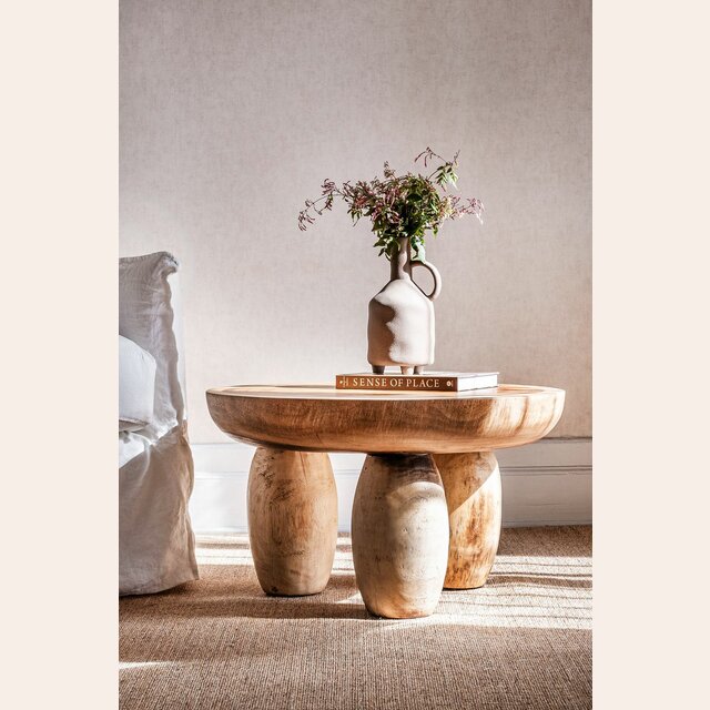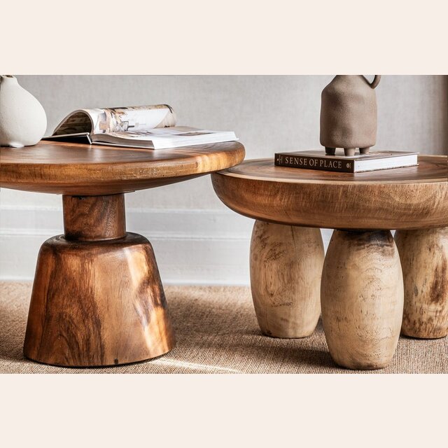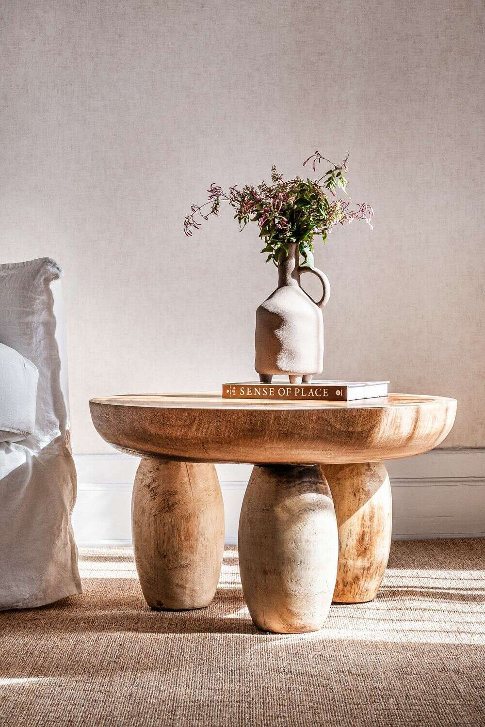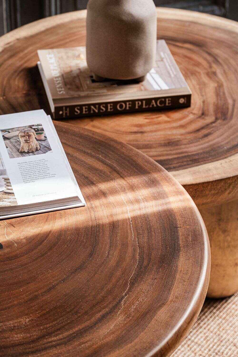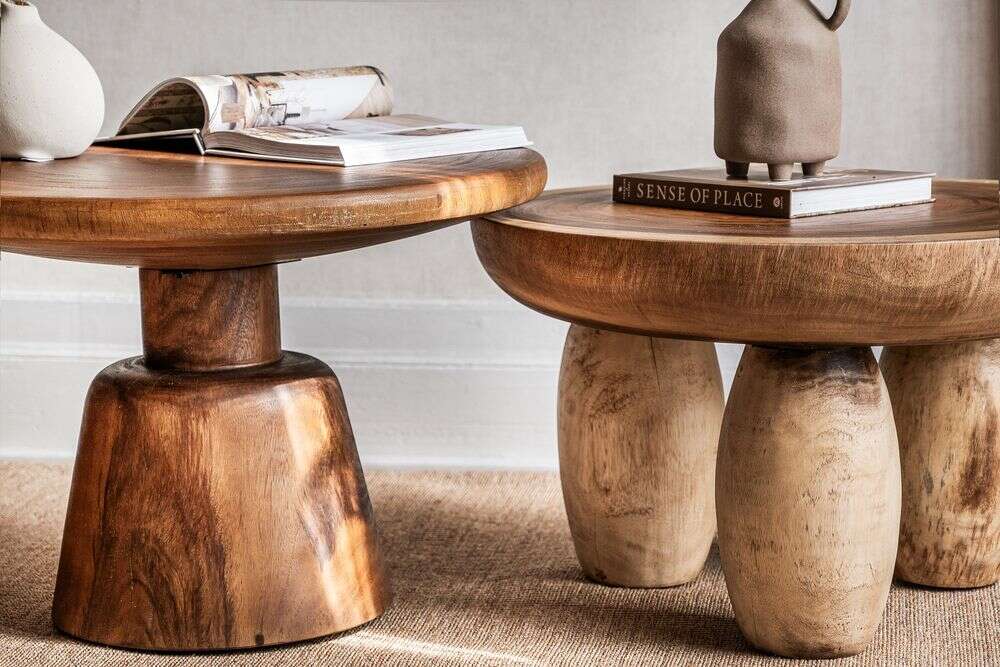 Mesa de centro en madera maciza de árbol de suar, lustre natural.