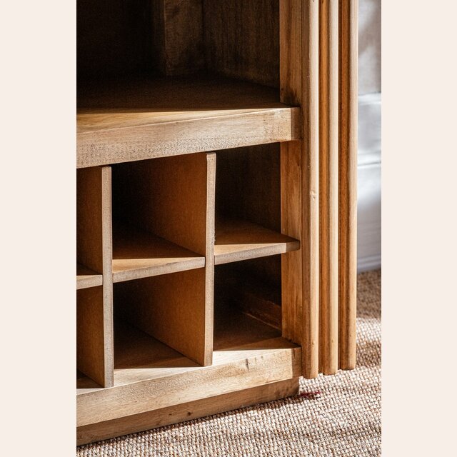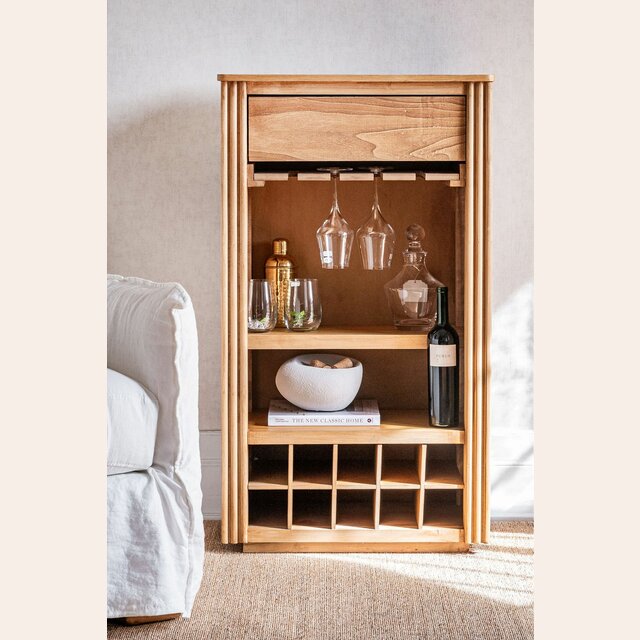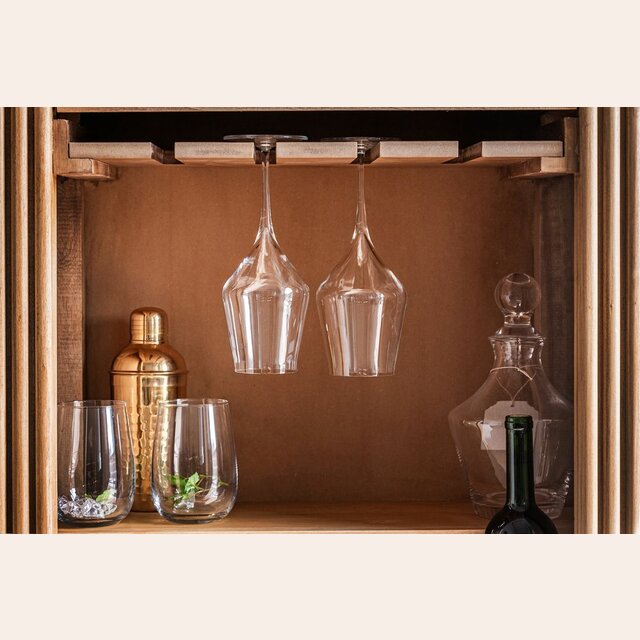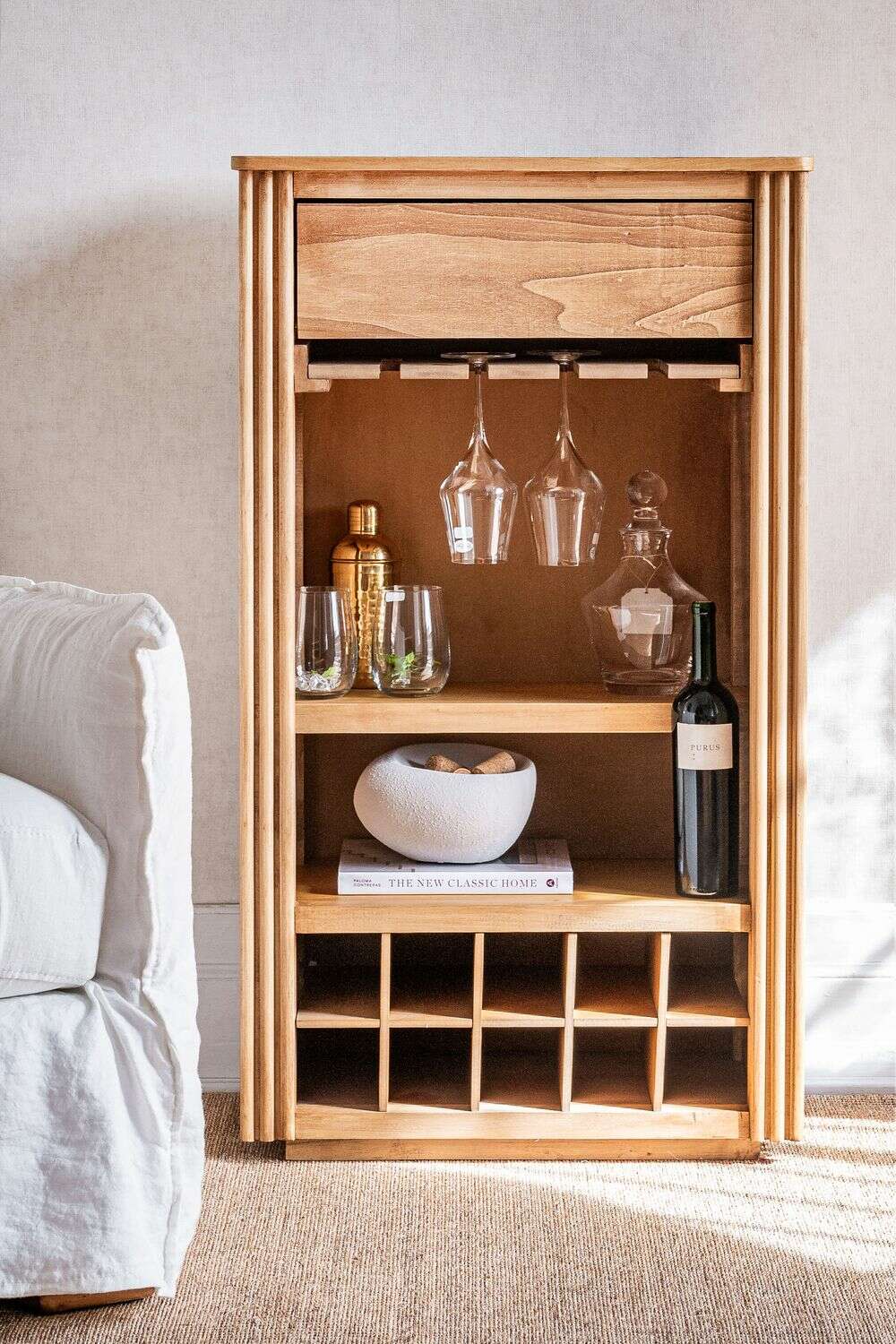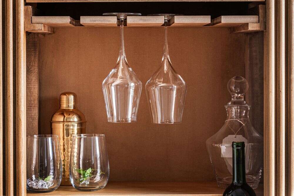 Máxima optimización del almacenamiento de botellas - bodeguero para 10 - y práctico guardado de copas, hieleras y accesorios de bar y cocktails.