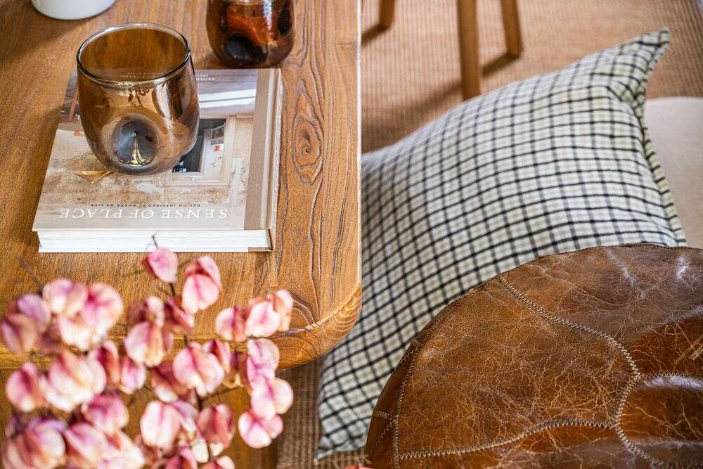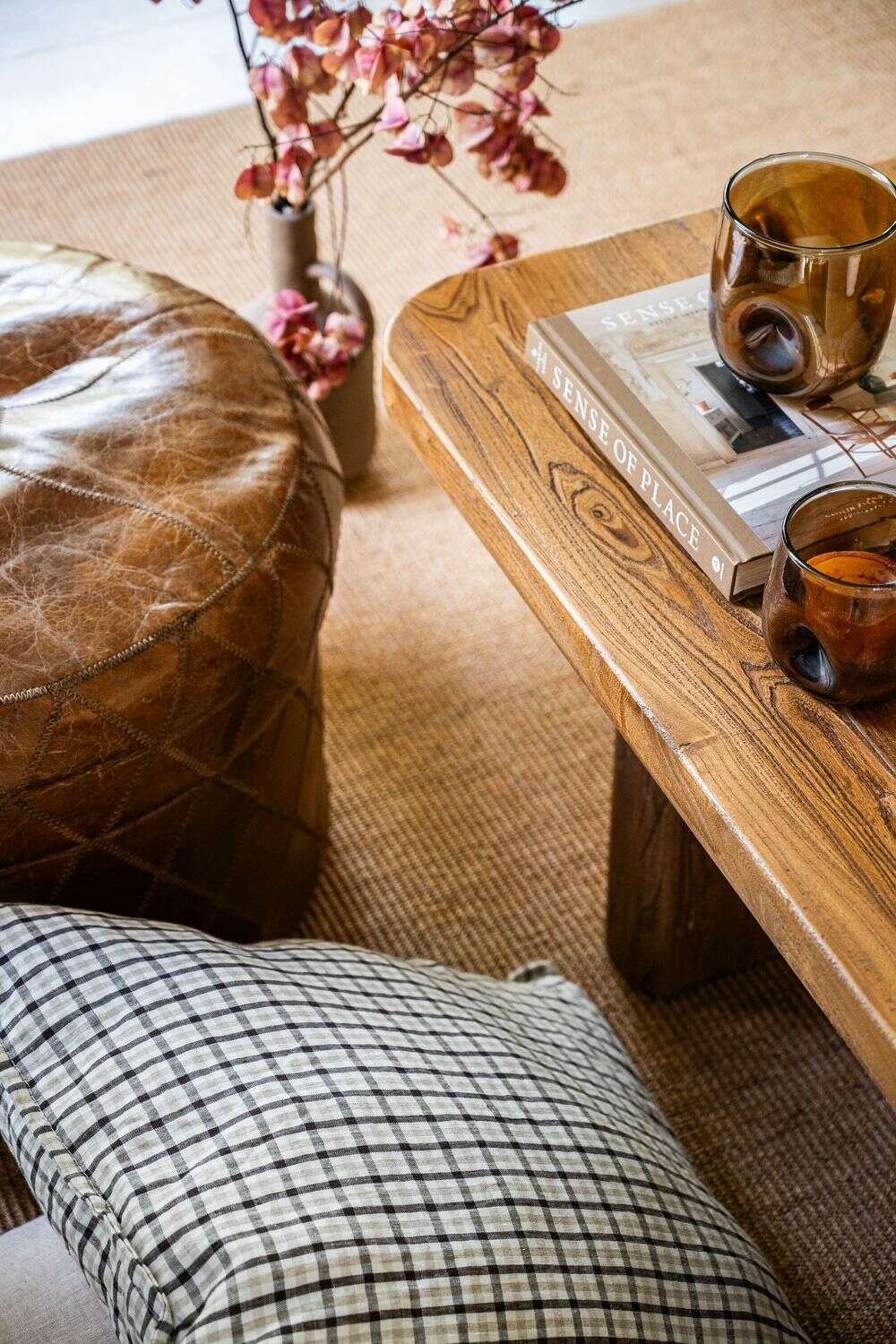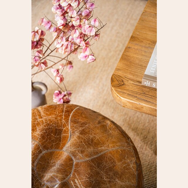 Cómodo y práctico puff-otomano de cuero italiano envejecido con puntadas en rombos.