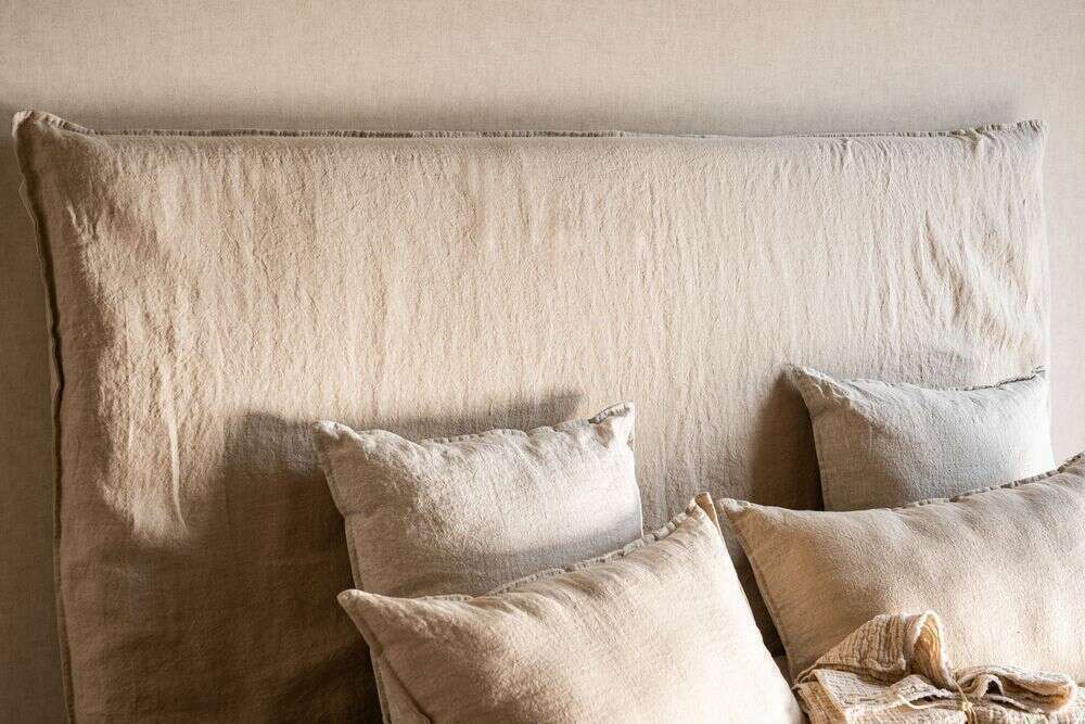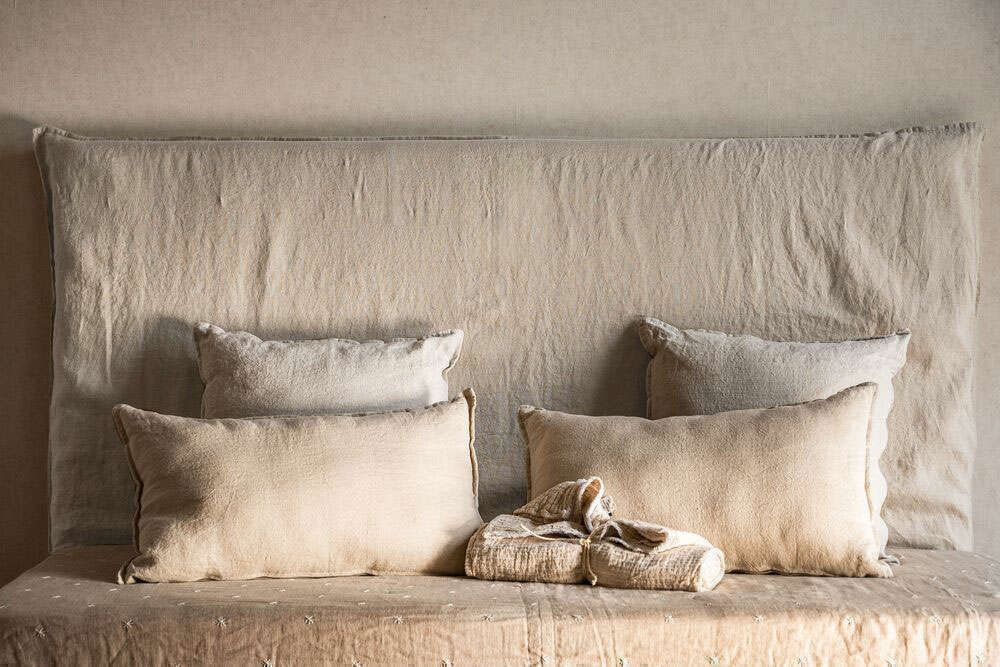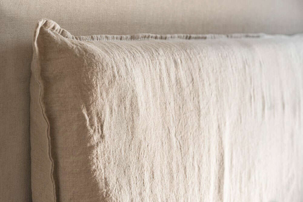 Respaldo de cama con funda desmontable de lino 100% natural, color crudo.