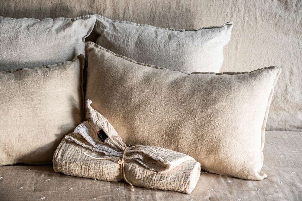 *El lino natural pasa por un proceso previo llamado decatizado: un proceso por el cual encoge lo máximo que puede y no vuelve a encoger al lavarse en lavarropas con agua fría.
