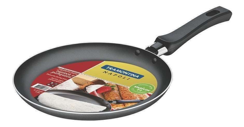 Sartén para cocinar panqueques con cuerpo de aluminio y recubrimiento interno antiadherente Starflon, marca Tramontina modelo Napoli.