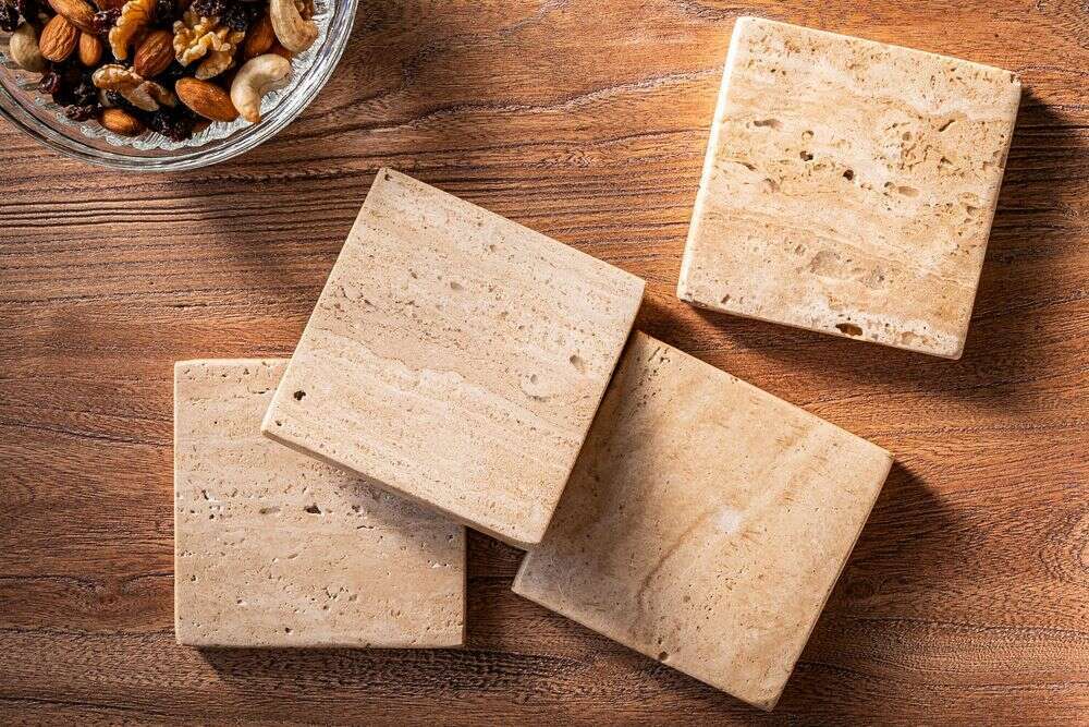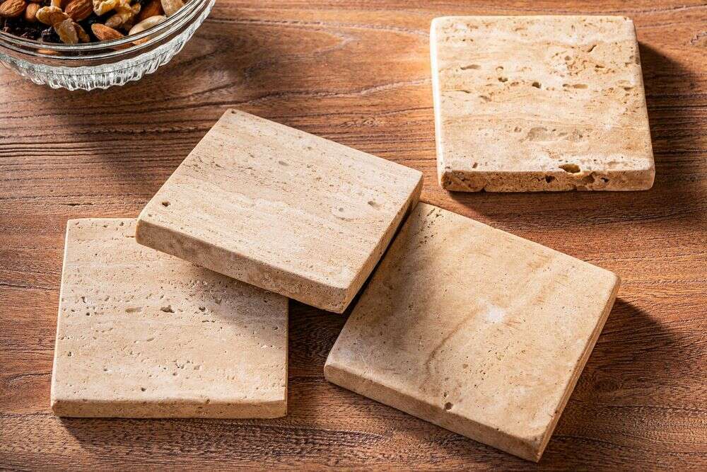 SET 4 POSAVASOS TRAVERTINO NATURAL