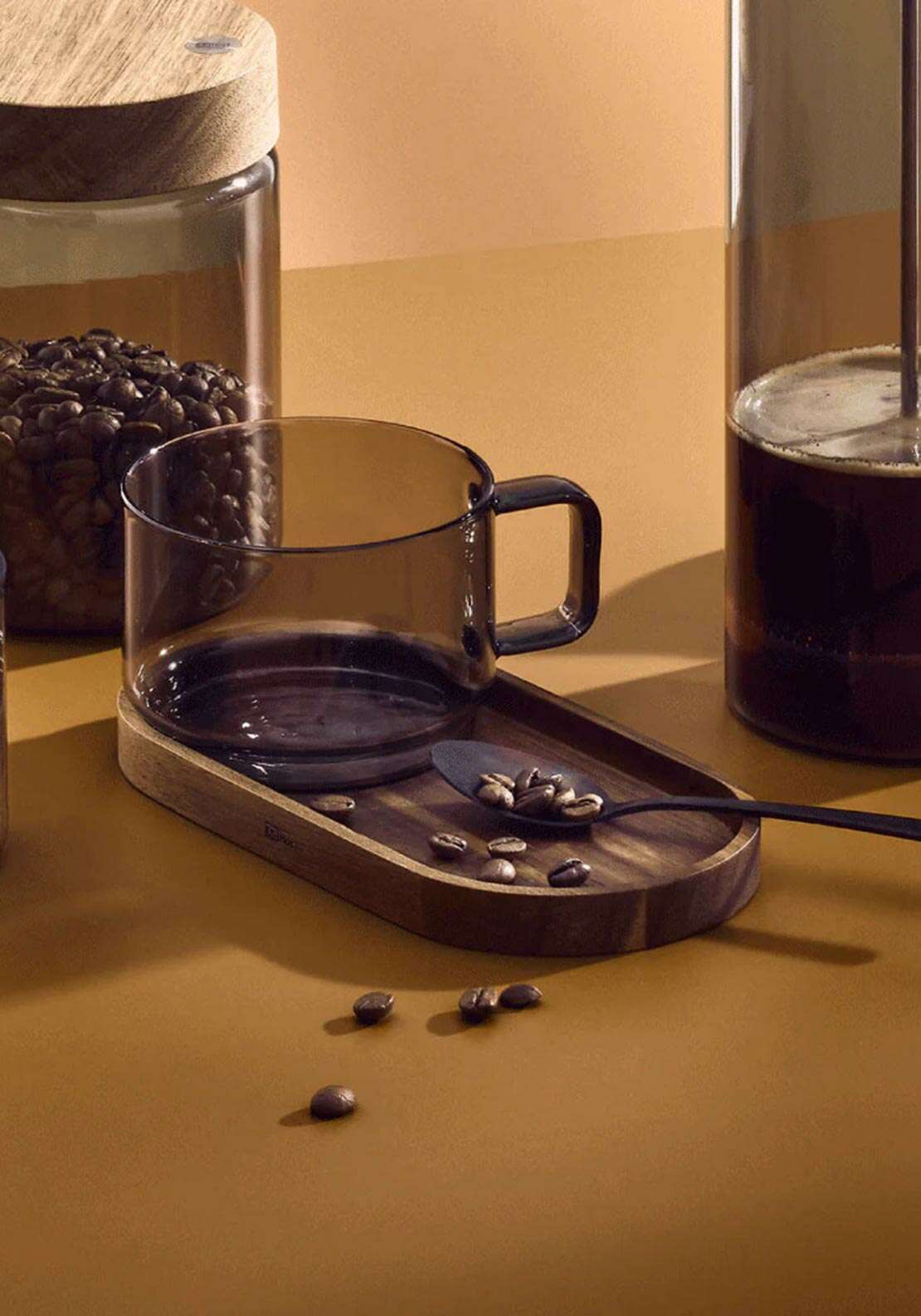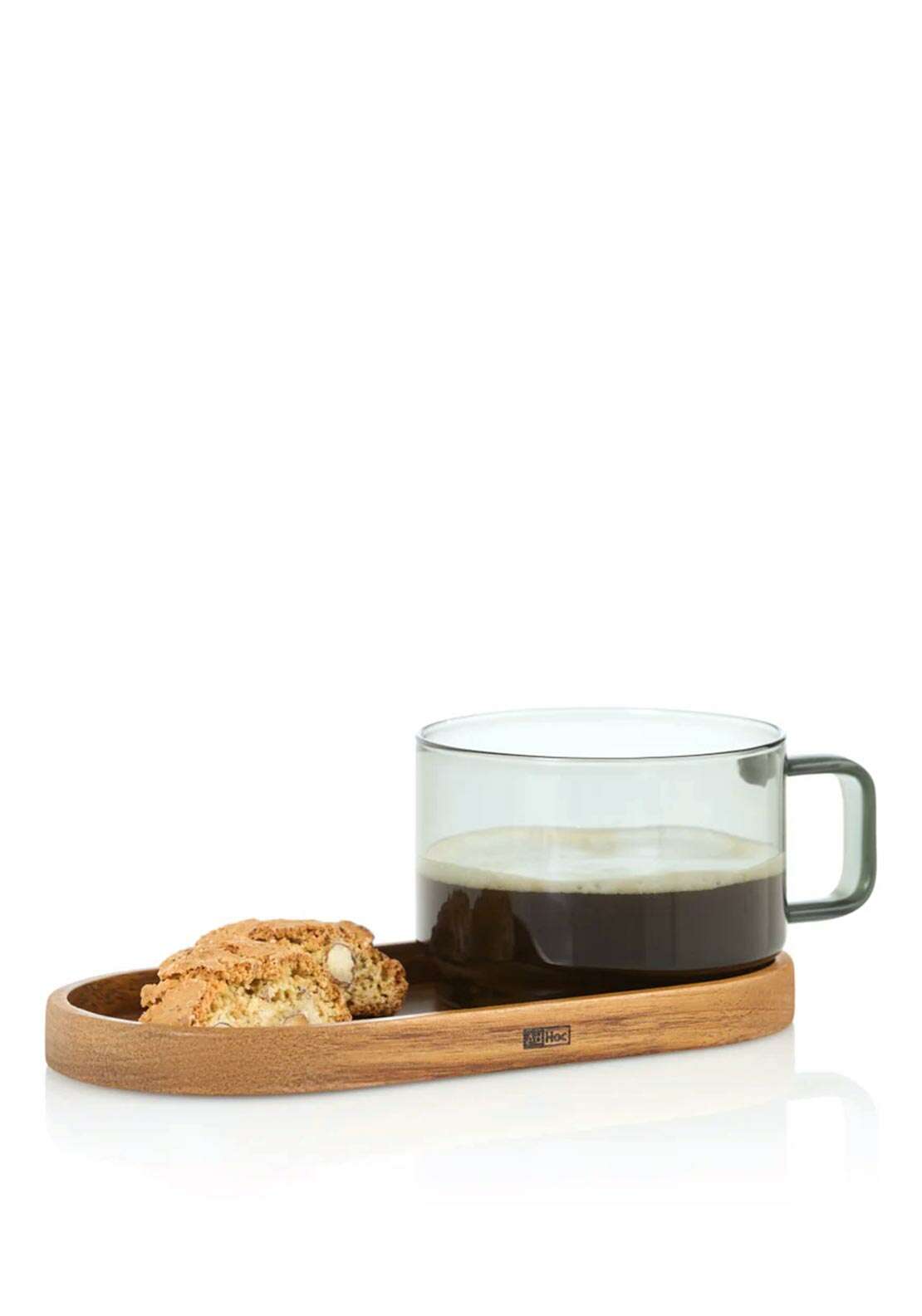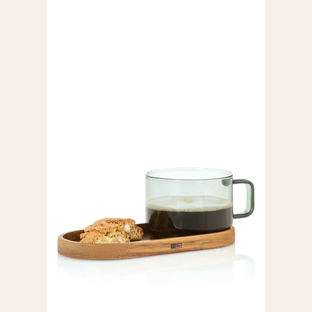 SET TAZA DE VIDRIO Y PLATO MADERA ACACIA - AD HOC