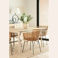 Con asiento de fibras y rattan color miel y estructura de hierro.
