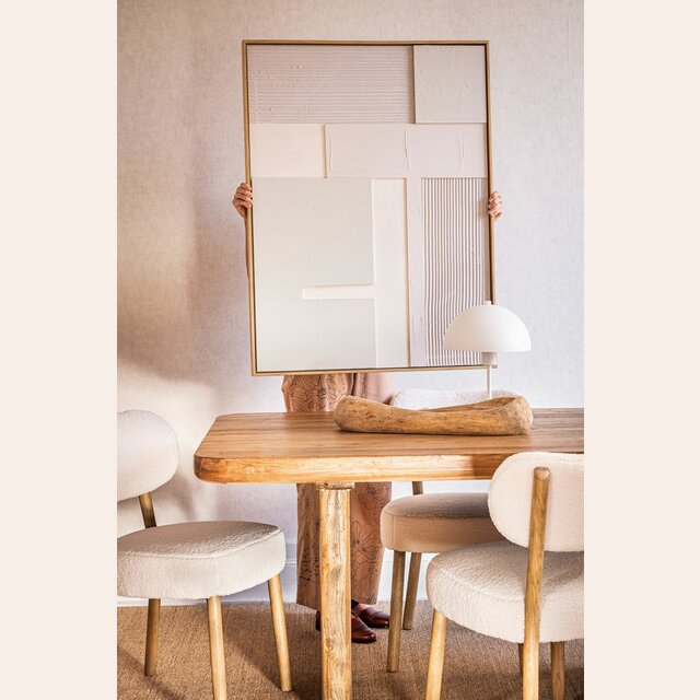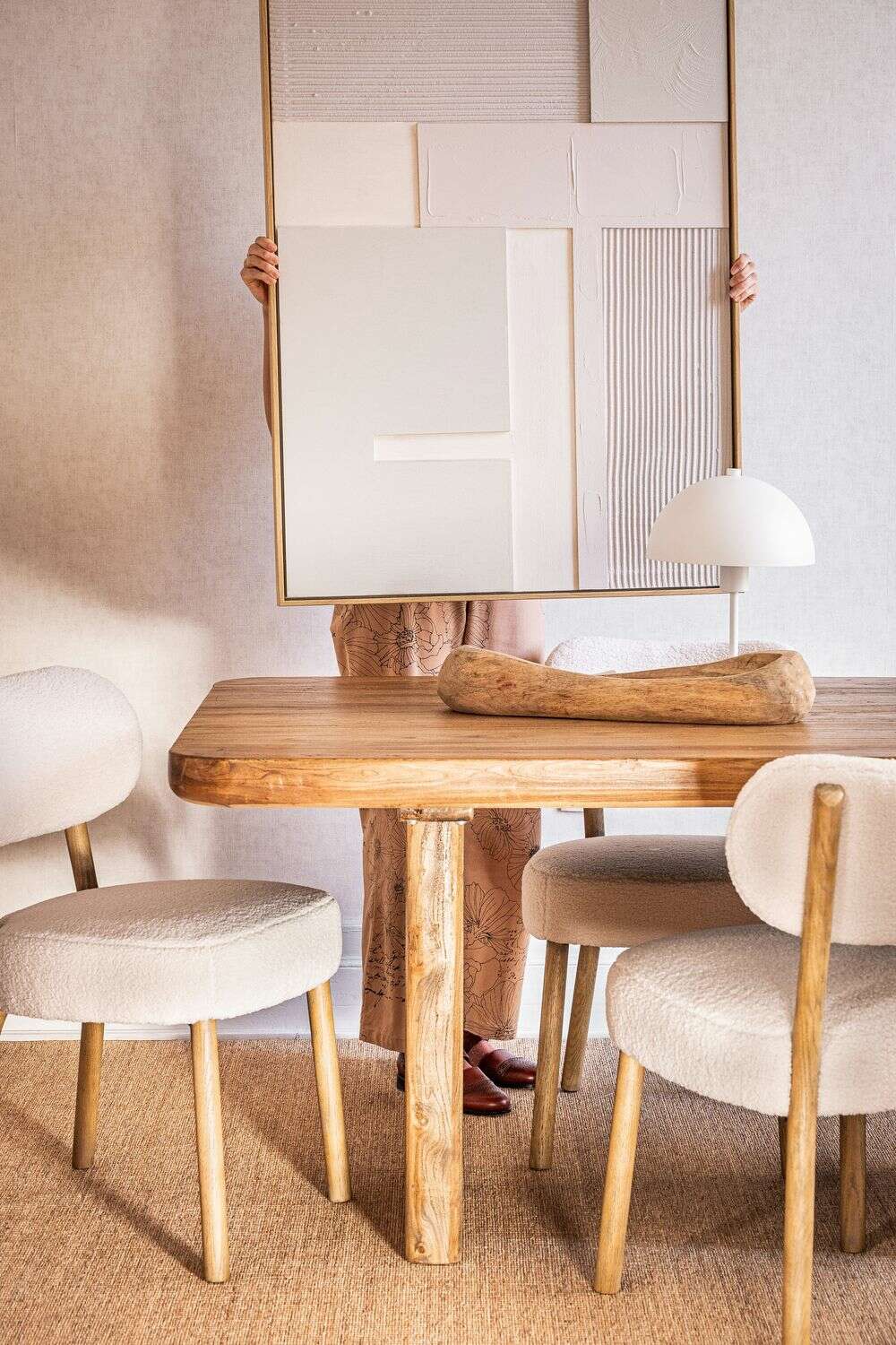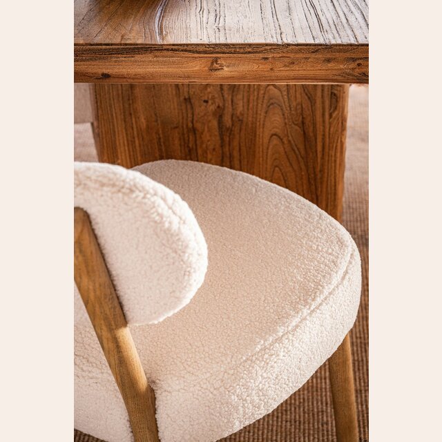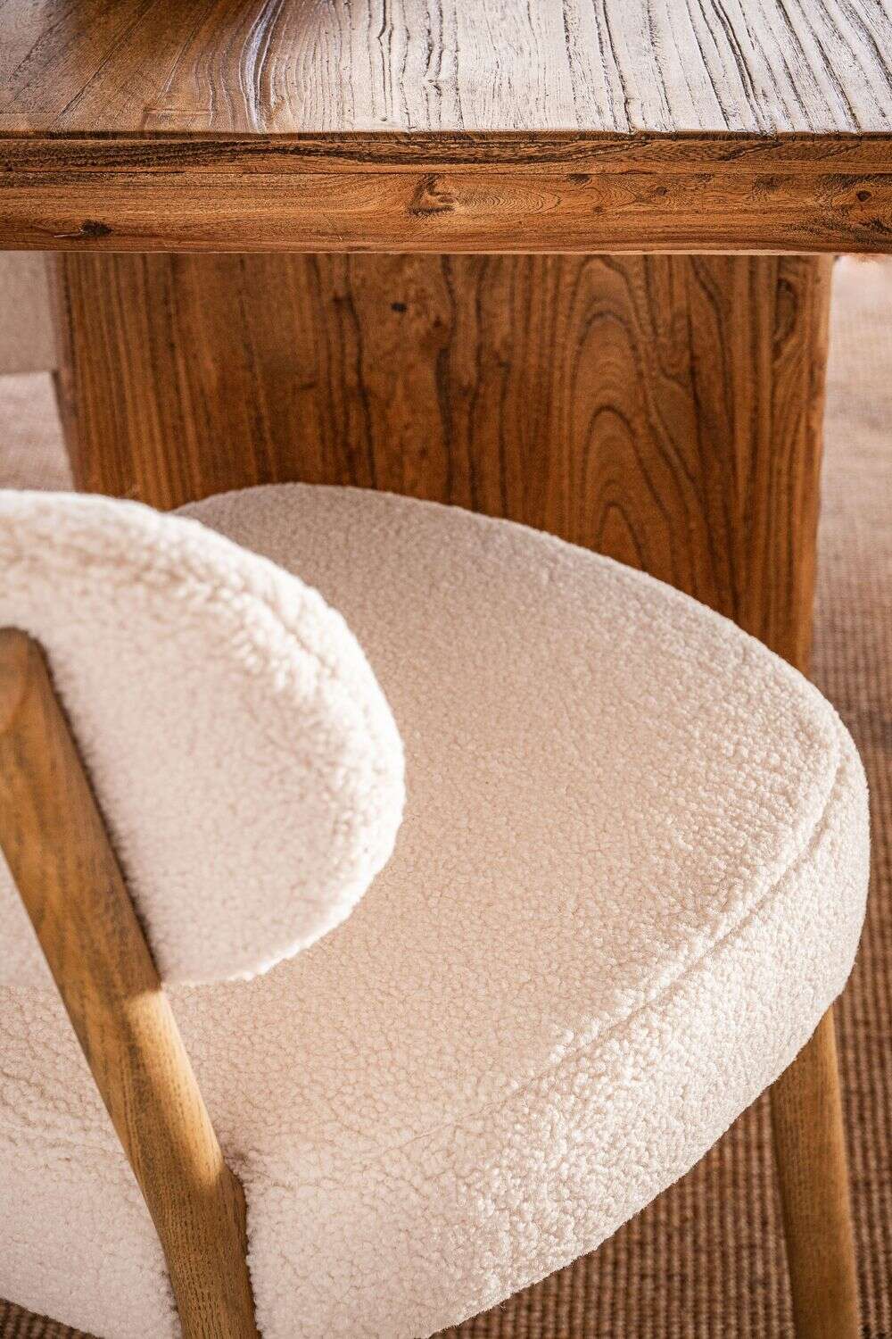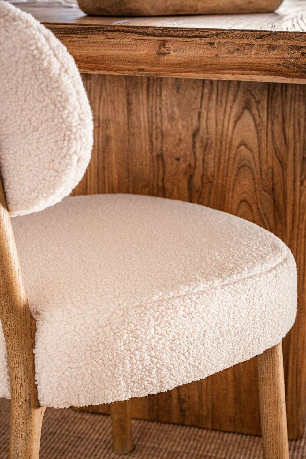 Cómoda silla de fresno macizo curvo y asiento de corderito sintético.