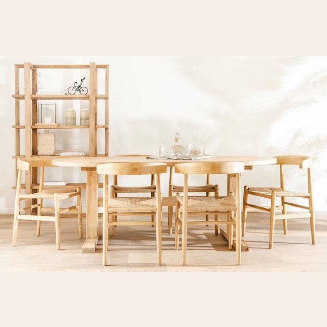 Divina silla de inspiración danesa en madera maciza de olmo con suave acabado en lustre natural y respaldo curvo.