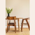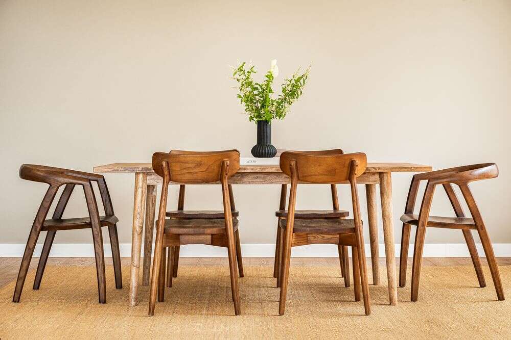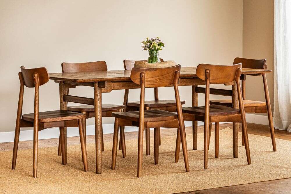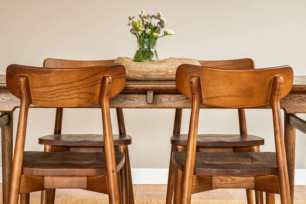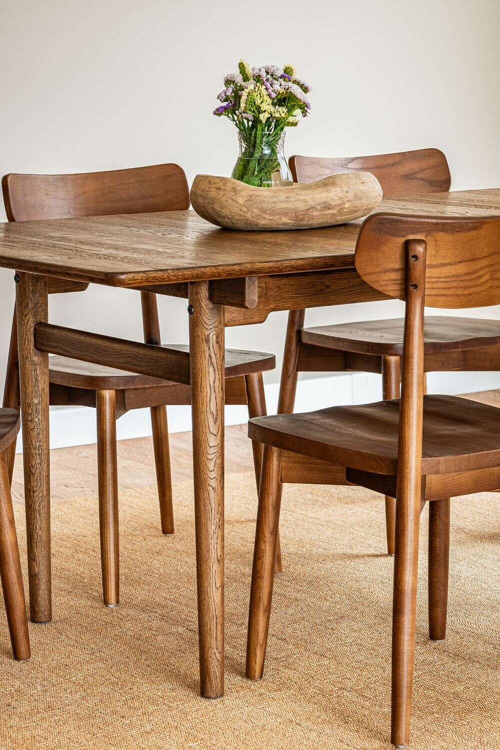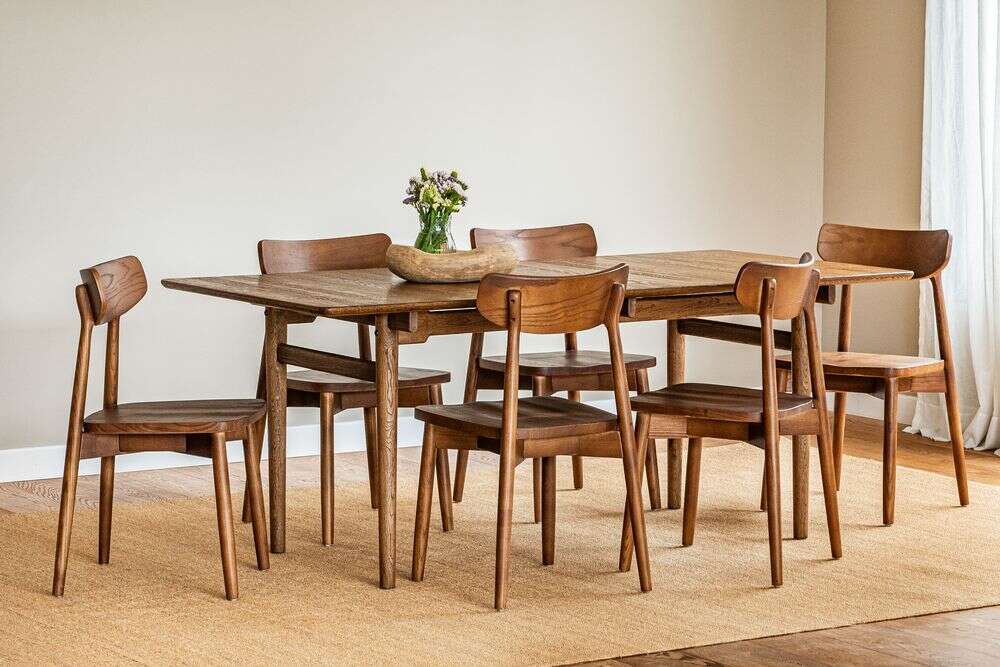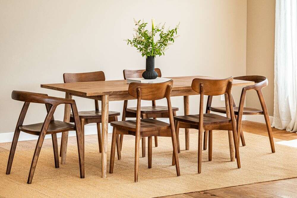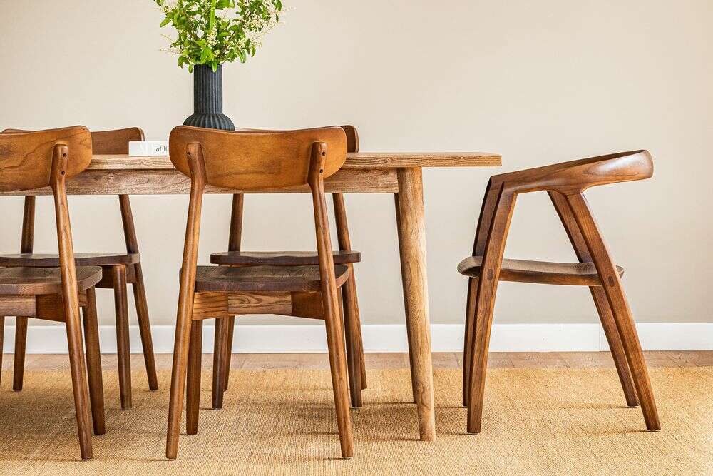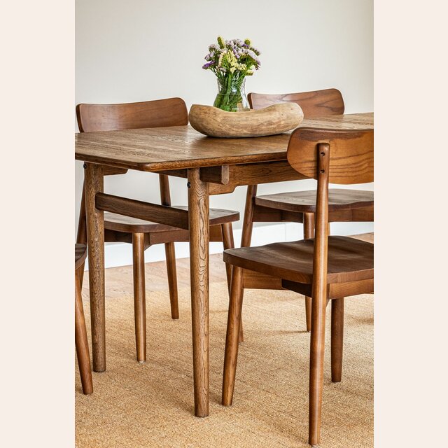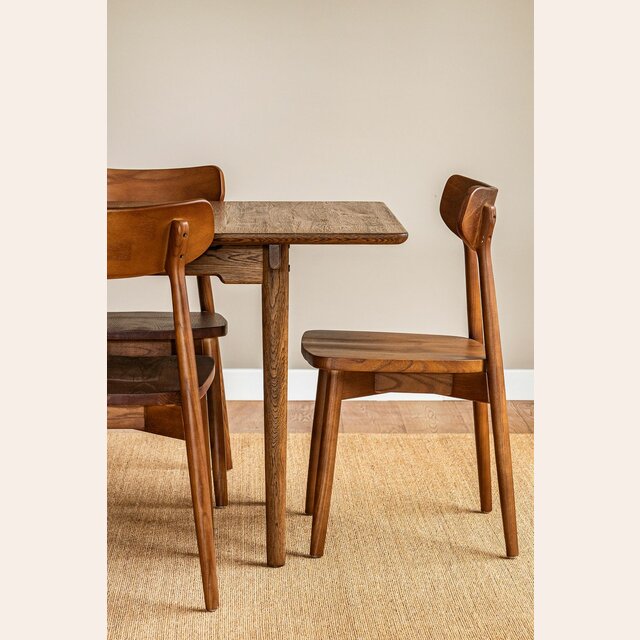 Asiento ergonómico y diseño minimalista en madera maciza de olmo en lustre avellana.
