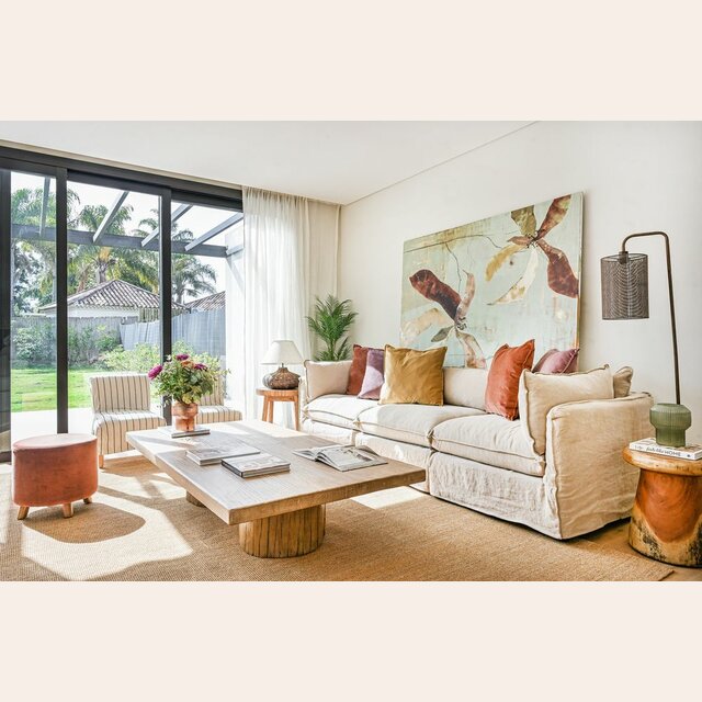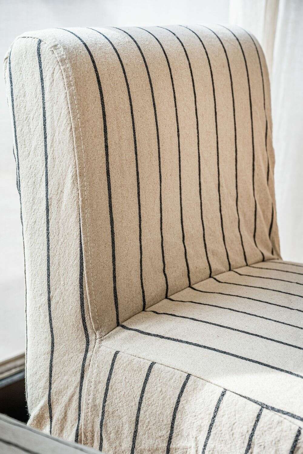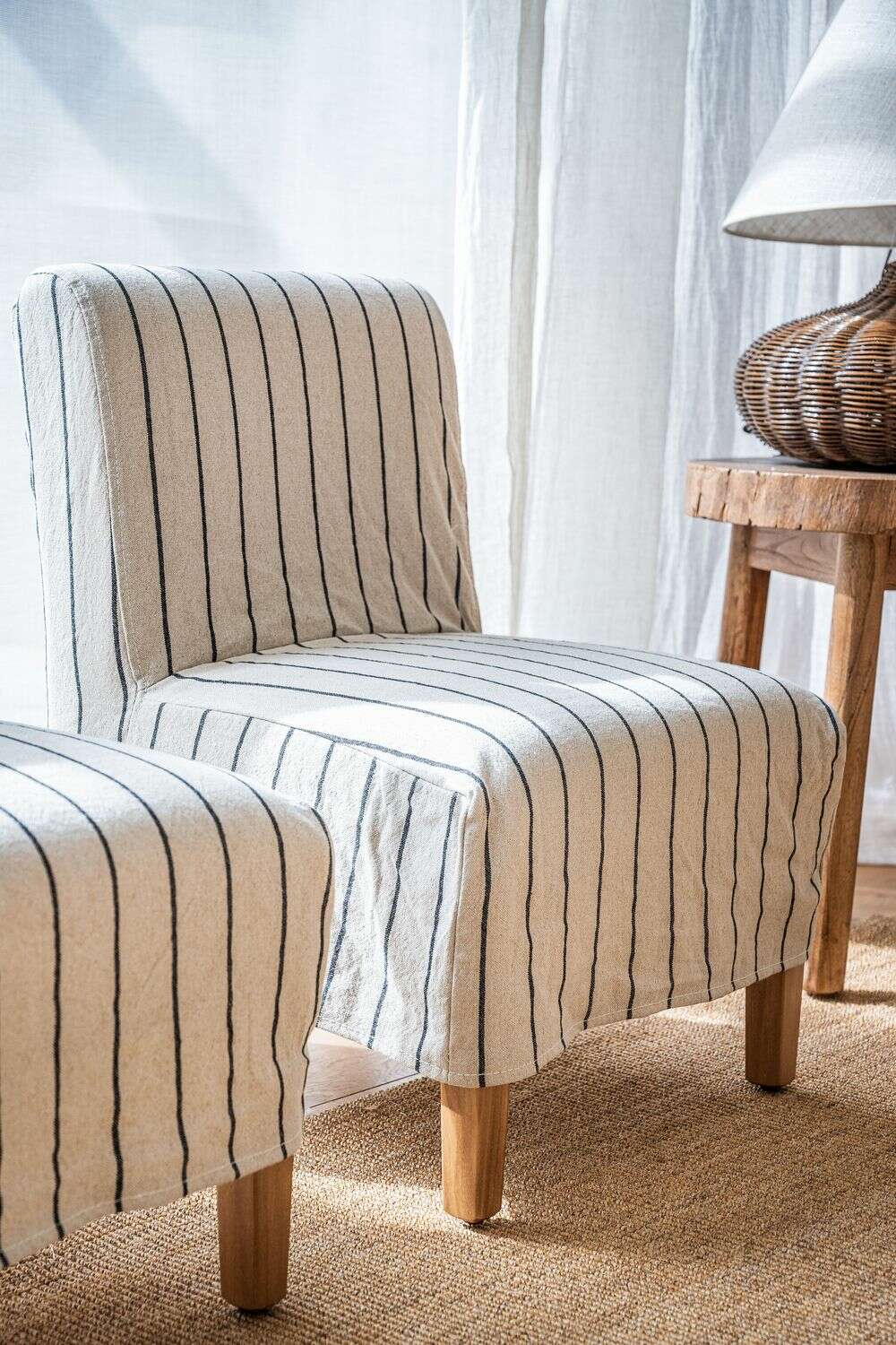 Versión de lino a rayas de la comodísima y práctica silla Soho, que agrega asientos adicionales cómodos y es fácil de transportar y colocar en distintos ambientes según la necesidad.