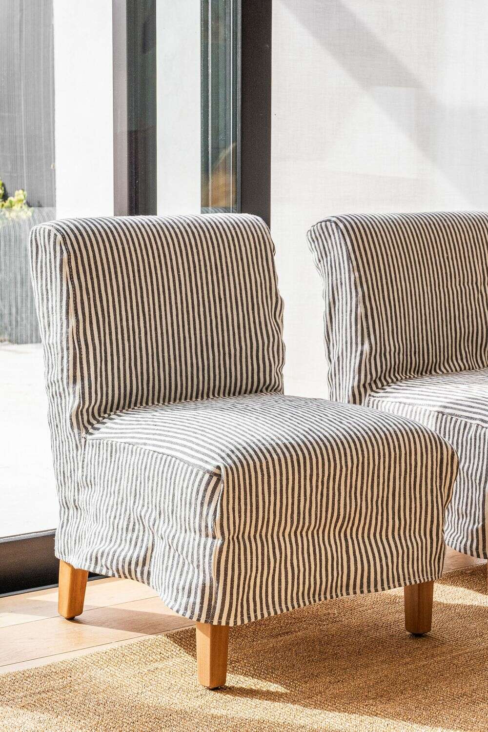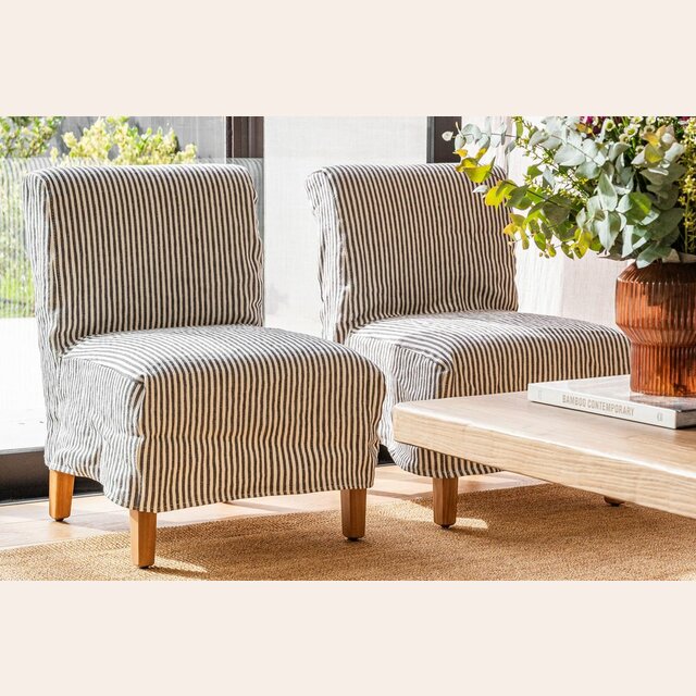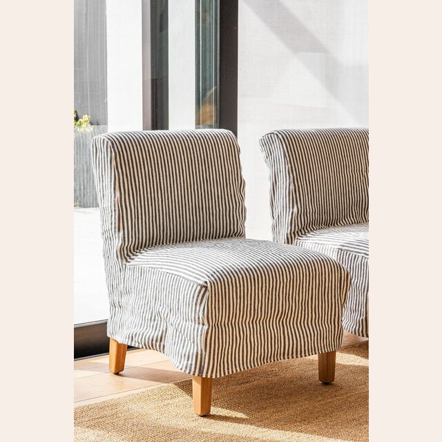 Versión de lino a rayas de la comodísima y práctica silla Soho, que agrega asientos adicionales cómodos y es fácil de transportar y colocar en distintos ambientes según la necesidad.