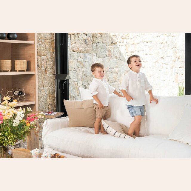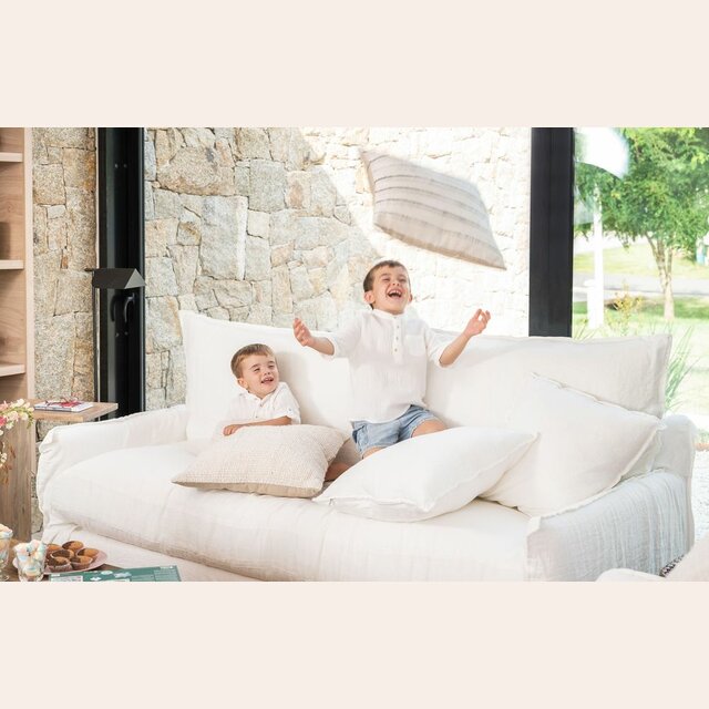 Espectacular y comodísimo sillón de 3 cuerpos con fundas desmontables 100% lino natural, lavables en lavarropas con agua fría.
