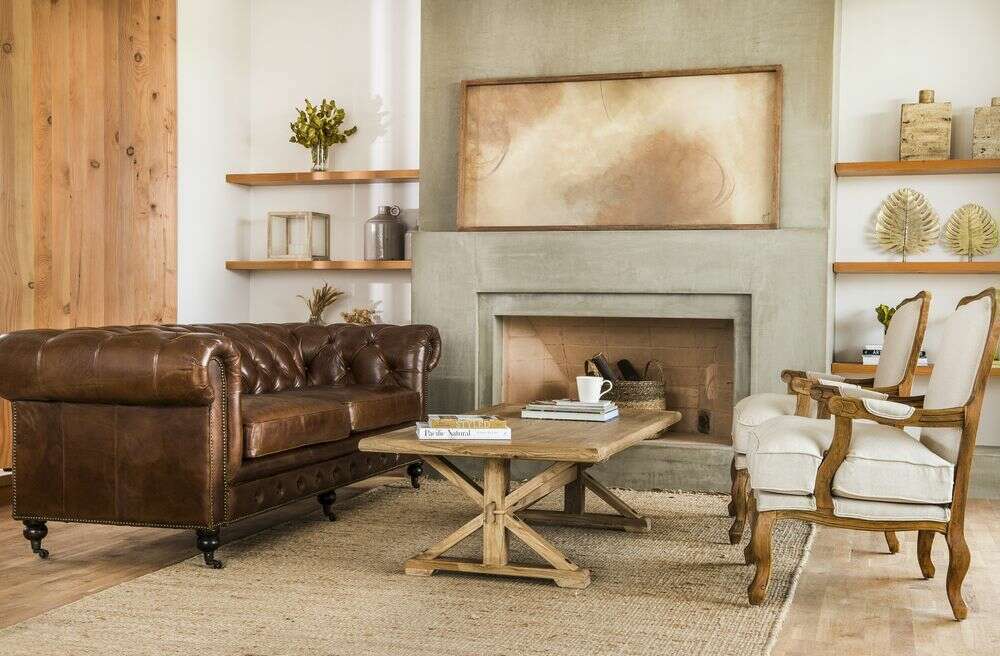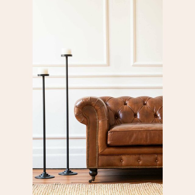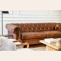 Espectacular versión del icónico Chesterfield en cuero italiano envejecido, color habano.