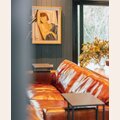 Espectacular sillón de cuero italiano color habano de líneas modernas, que contrastan con la calidez y atemporalidad del cuero envejecido.