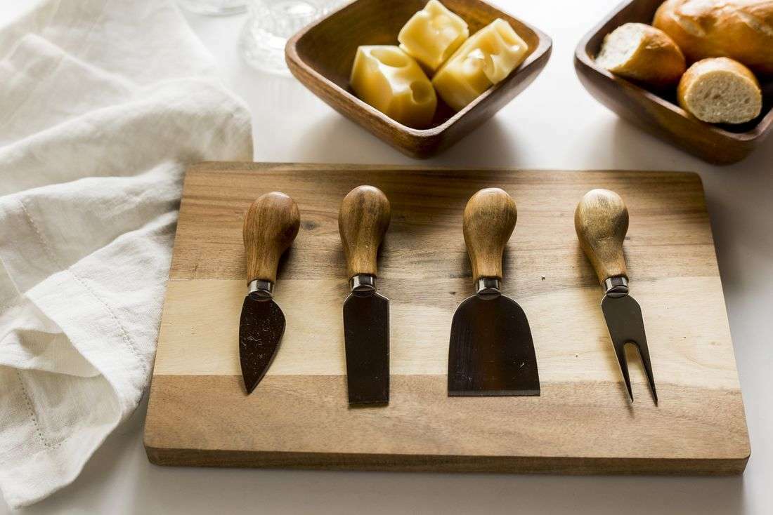 - 1 tabla de madera de acacia para el queso