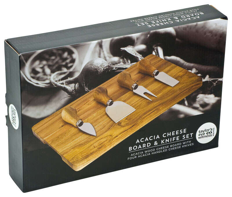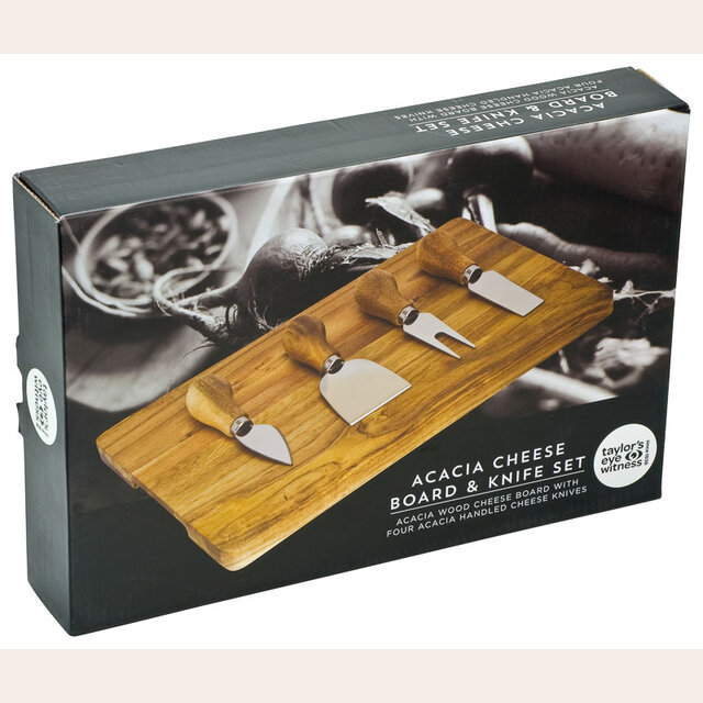 TABLA DE ACACIA Y 4 CUCHILLAS DE QUESO TAYLORS