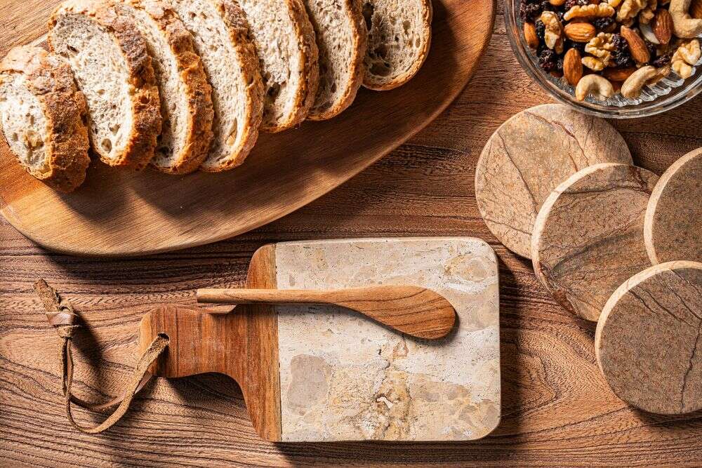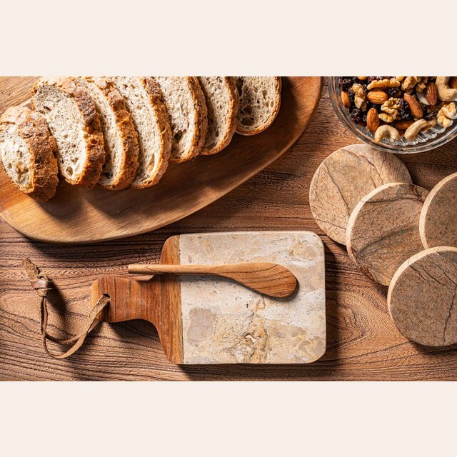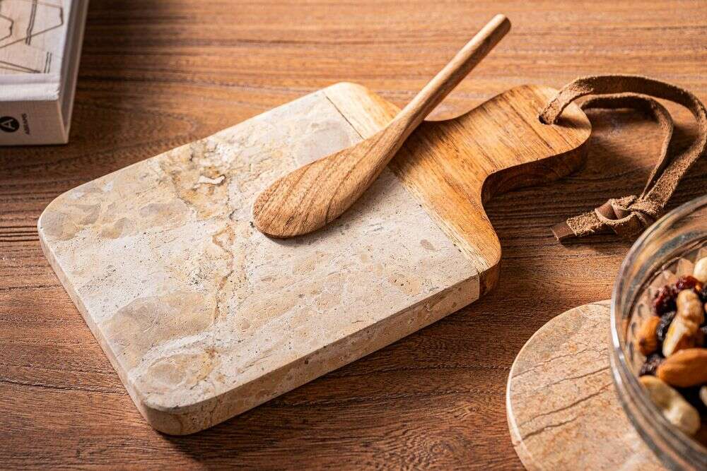 TABLA MARMOL Y MADERA CON CUCHILLO
