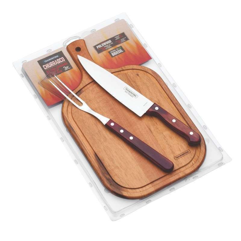 TABLA Y JUEGO DE TRINCHAR - TRAMONTINA POLYWOOD - ROJO
