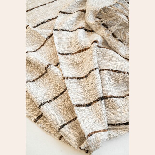 Liviana, 100% algodón. Estampado rayado dando un toque contemporáneo y cálido.